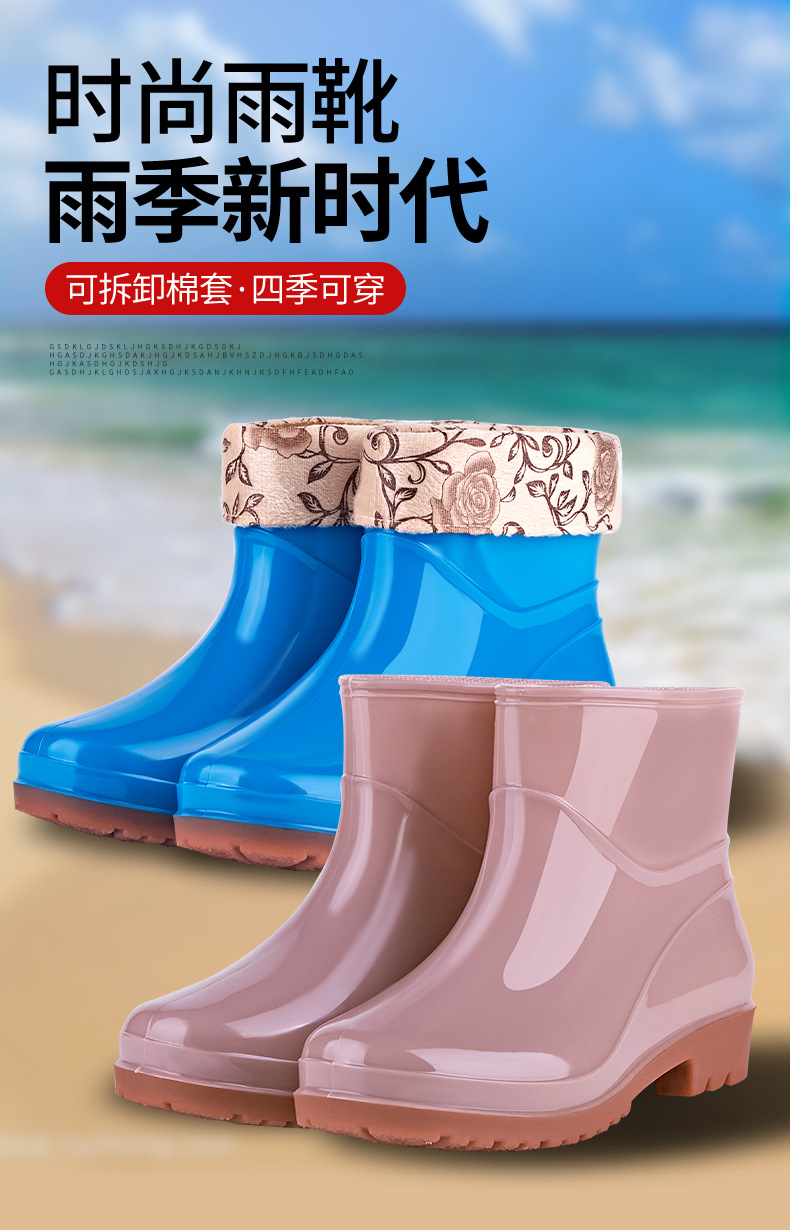 패션 봄과 가을 낮은 튜브 여성용 레인 부츠 sgs 낮은 미끄럼 방지 여성용 레인 부츠 짧은 튜브 주방 세차 고무 신발 여성스토어 가기