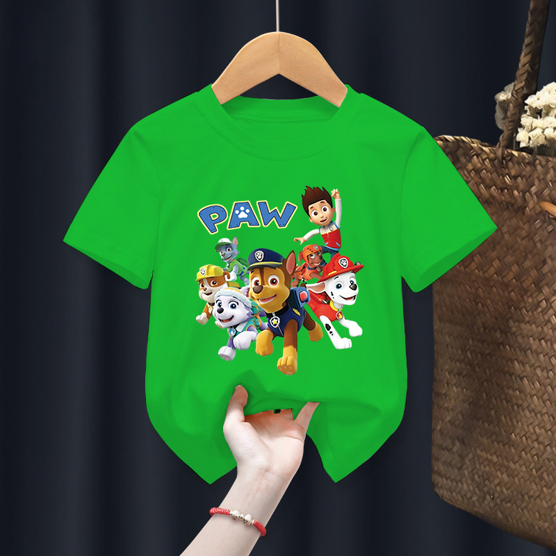 남아 반팔 티셔츠 탑 순면 봄과 여름 새로운 여아 반팔 티셔츠 탑 어린이 반팔 만화 탑