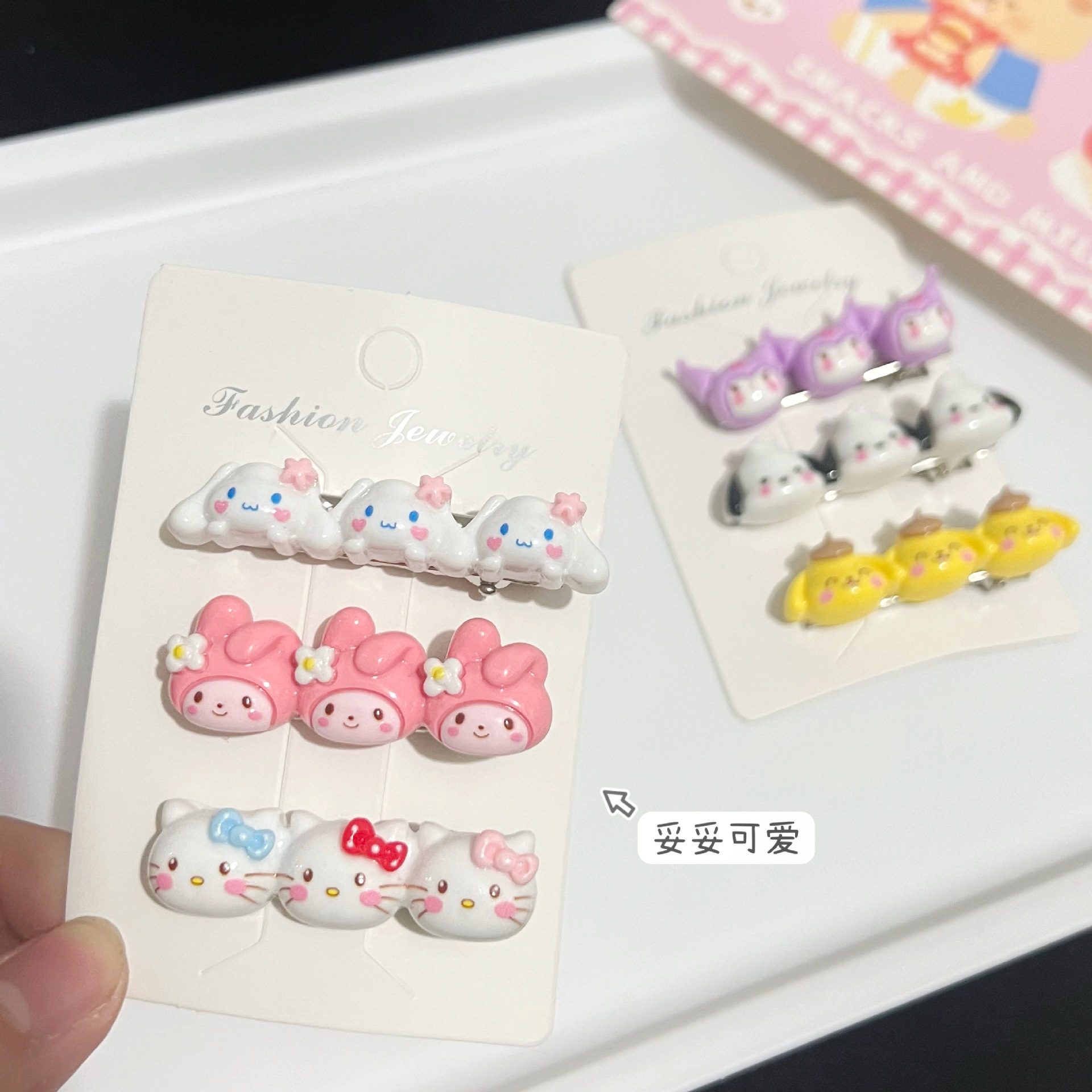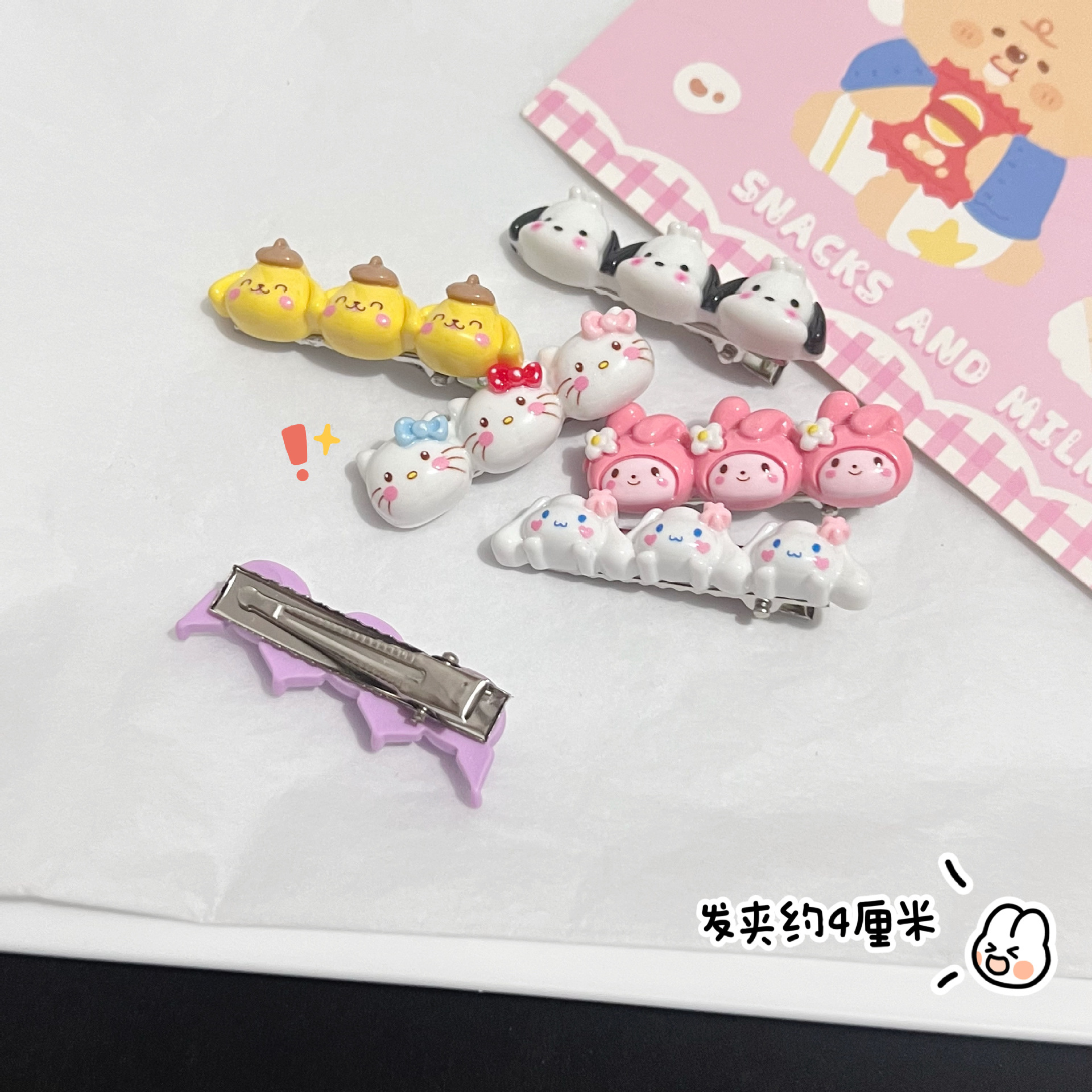 귀여운 세 작은 ~ 산리오 머리핀 일본 한국 달콤한 오리 빌 클립 소녀 심장 학생 앞머리 헤어 액세서리