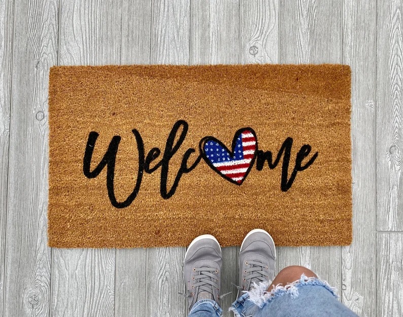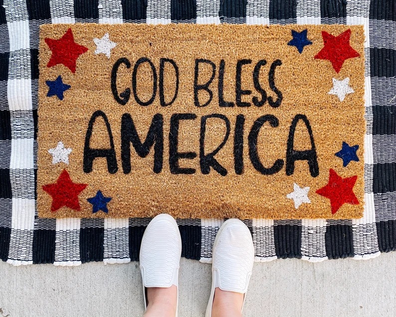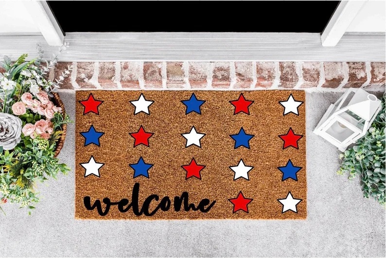 국경 간 temu 독립 기념일 미끄럼 방지 도어 매트 홈 입구 문 얼룩 방지 미끄럼 방지 간편한 관리 발 매트 재고 있음스토어 가기