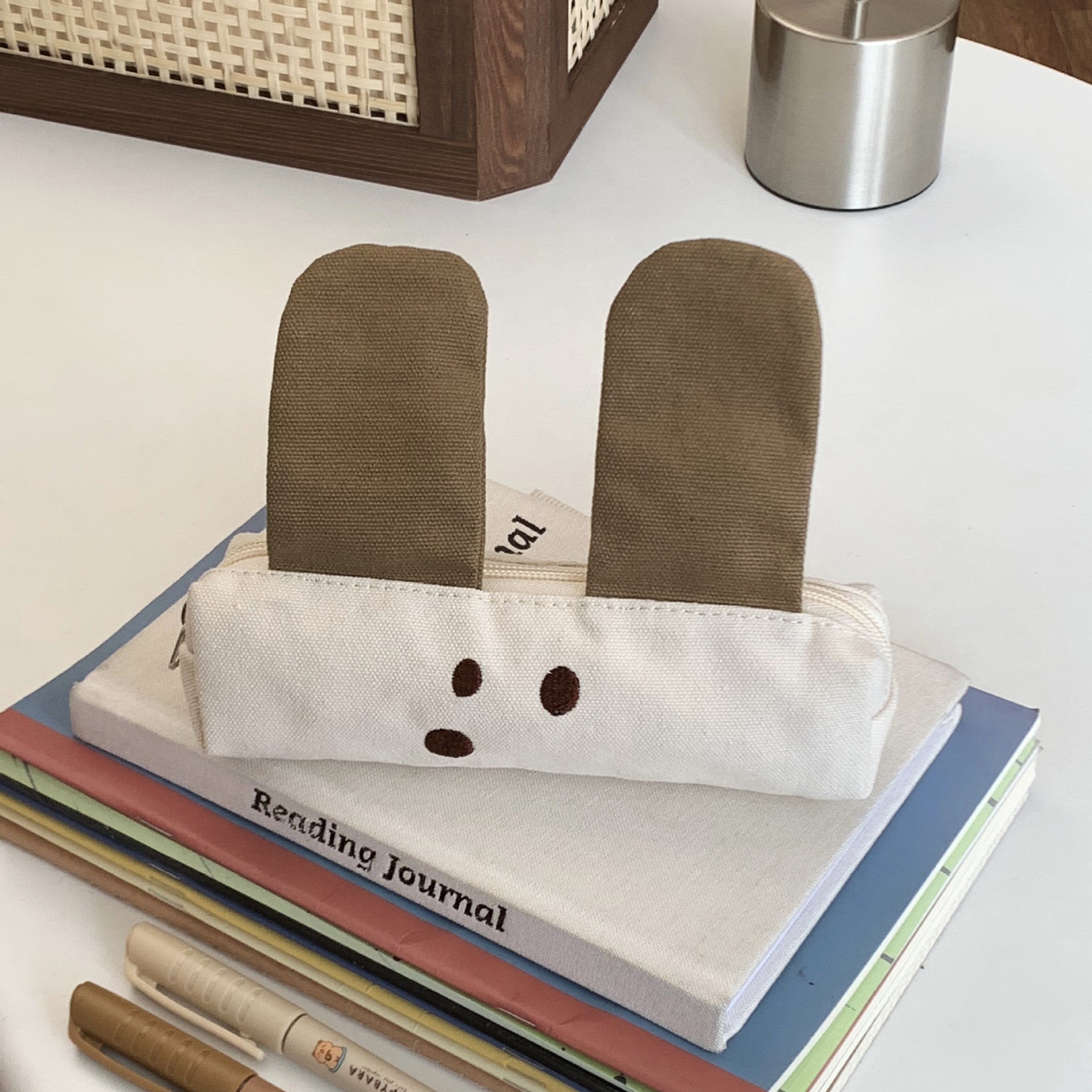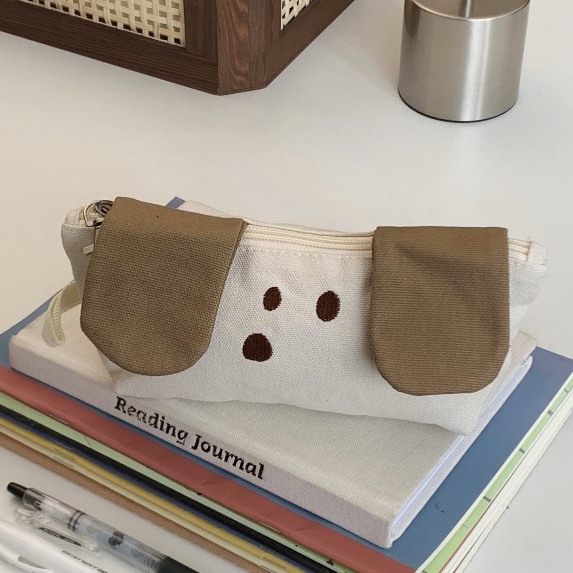 원래 귀여운 커피 강아지 캔버스 연필 가방 초등 및 중등 학생을위한 대용량 문구 가방 다기능 문구 보관 가방