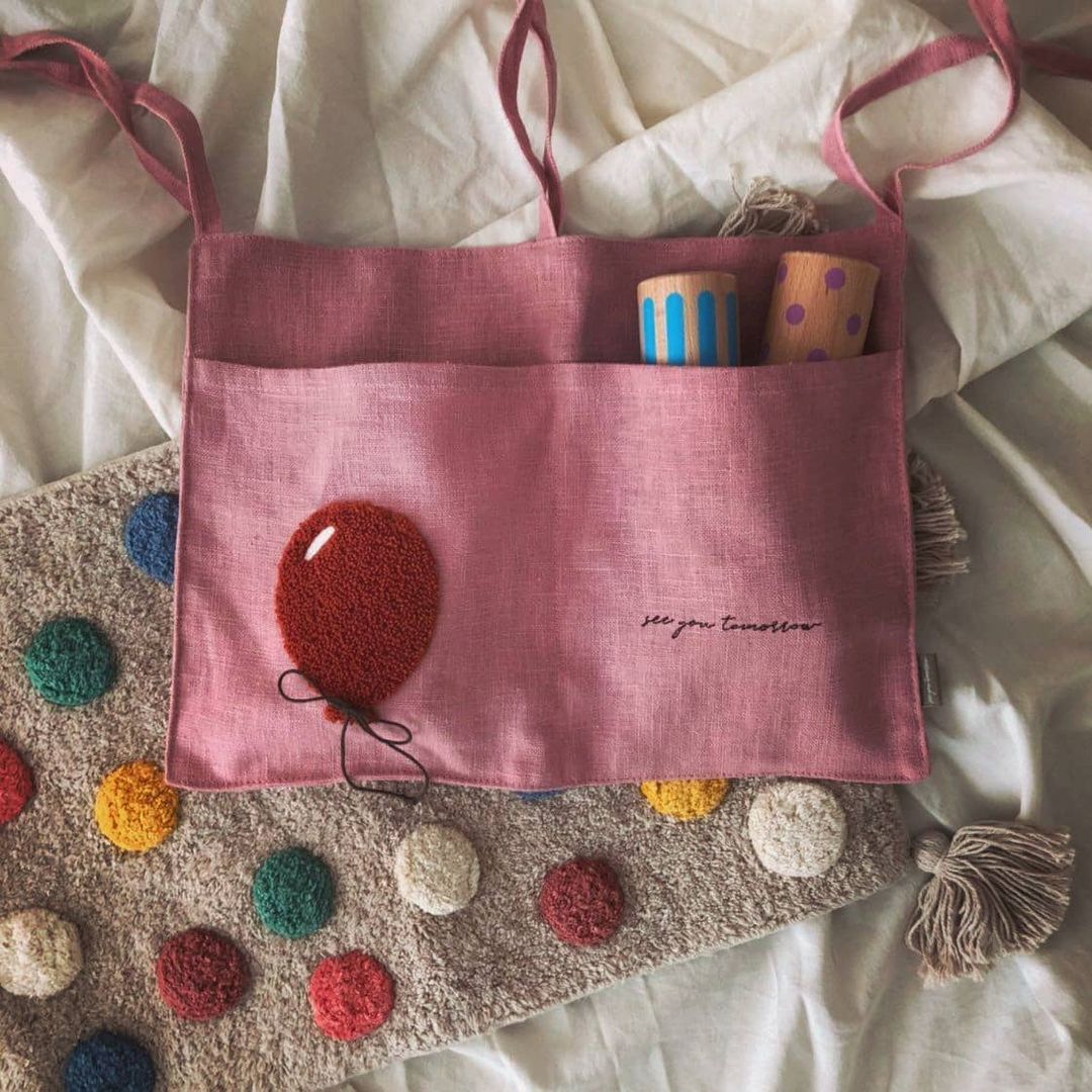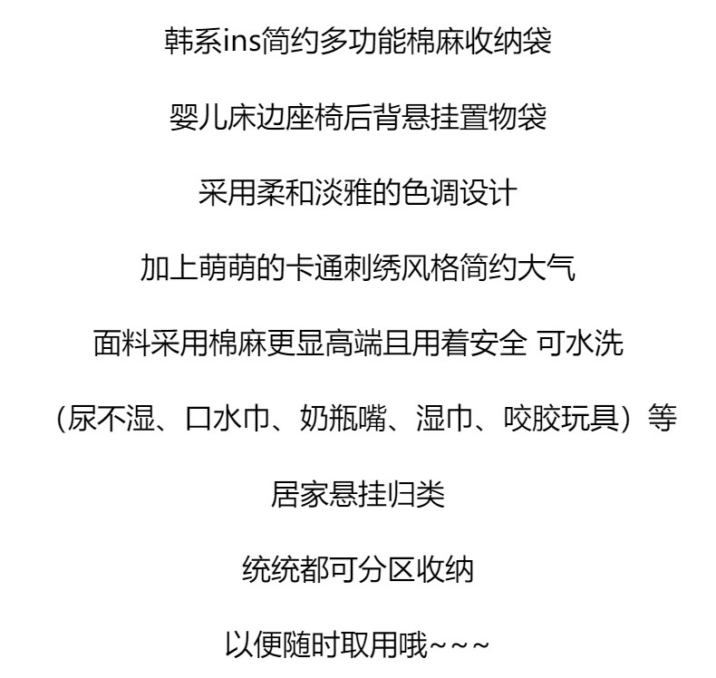 한국식 자수 면과 린넨 유아용 침대 아기 카시트 등받이 걸이 가방 다목적 침대 옆 걸이 수납
