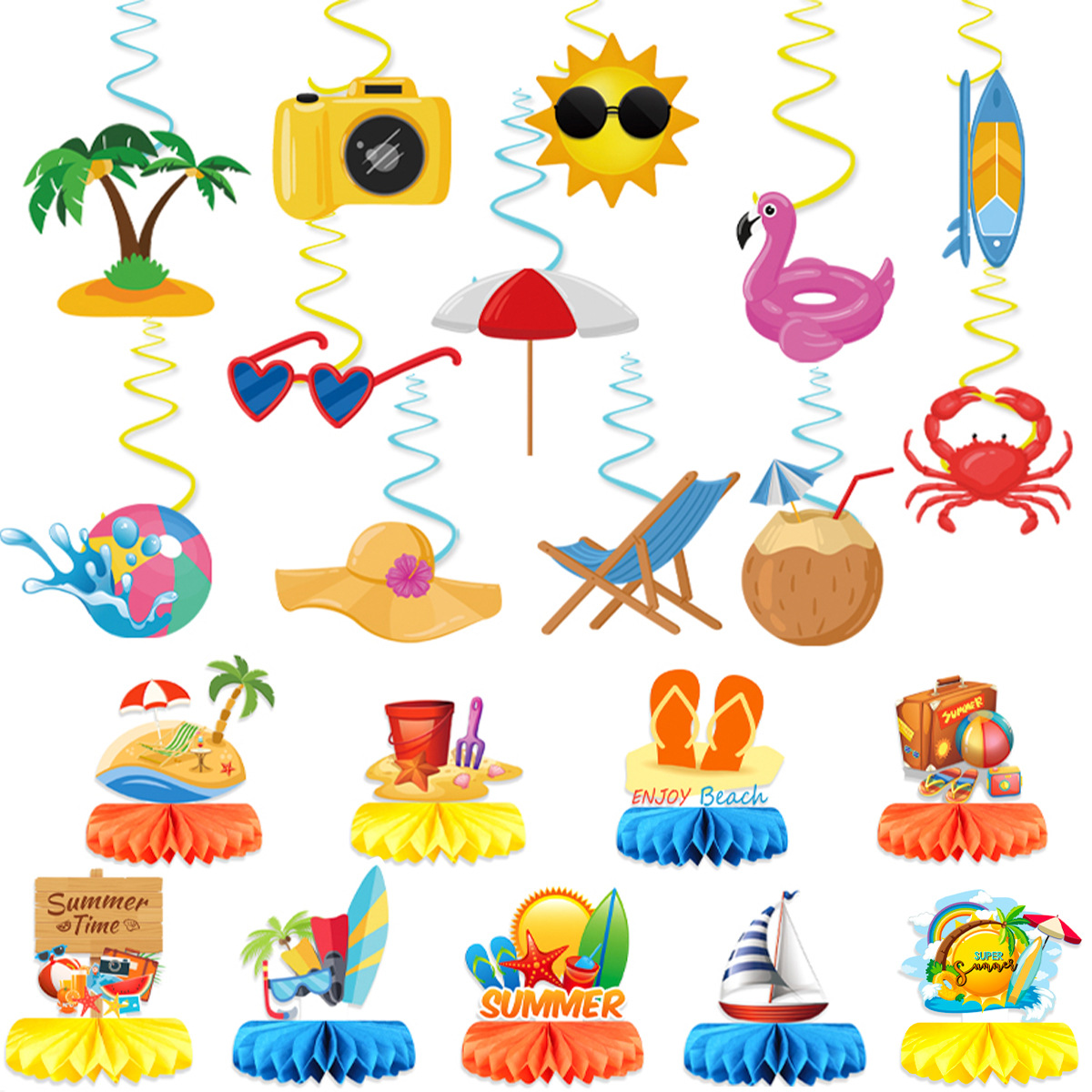 欧美夏日海洋沙滩蜂窝摆件套装summer假日派对装饰挂饰组合批发