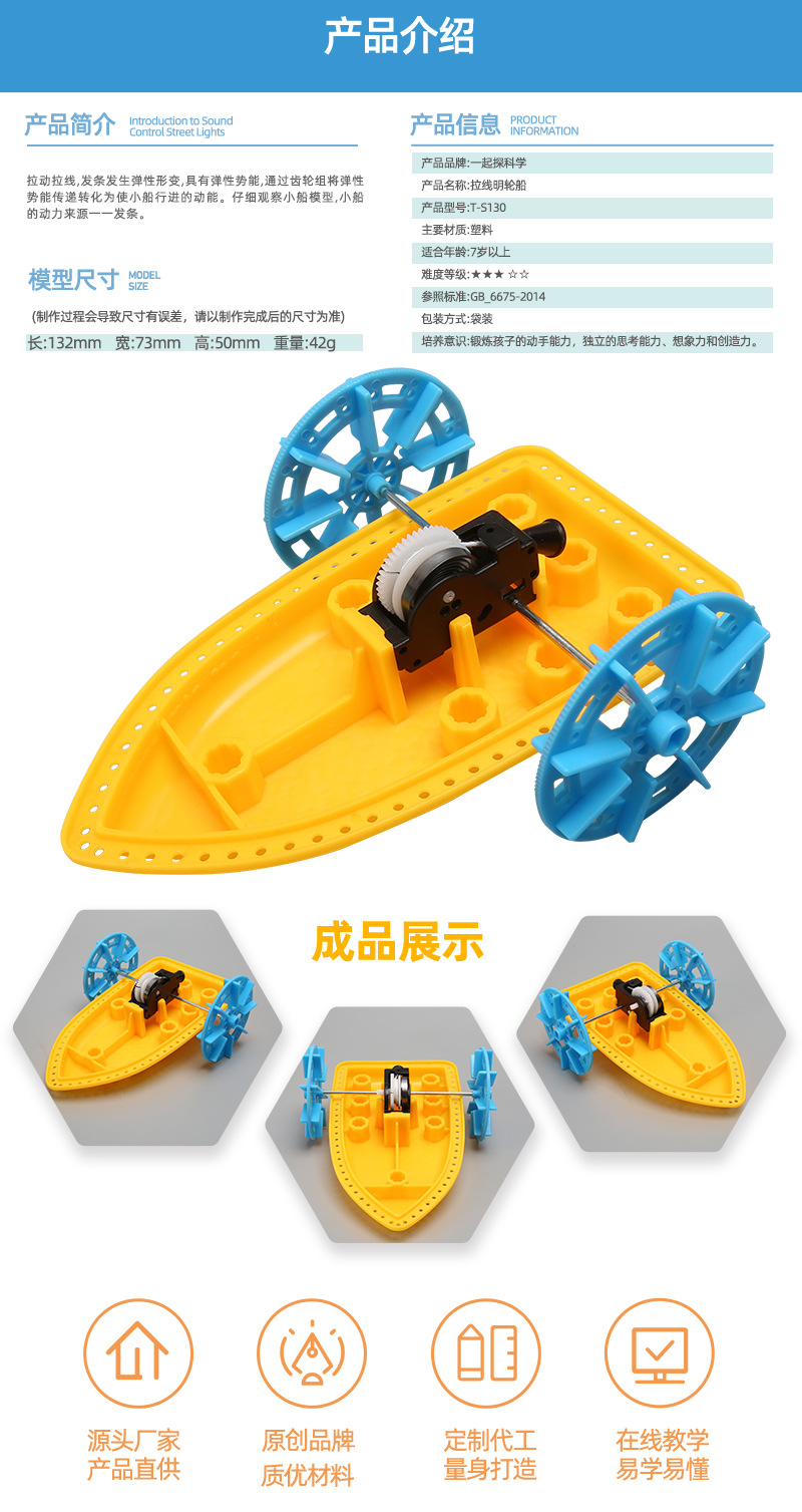 과학 기술 소규모 생산 수제 DIY 풀 와이어 패들 보트 어린 초등학생 재미있는 과학 교육 장난감 조립 재료 패키지스토어 가기