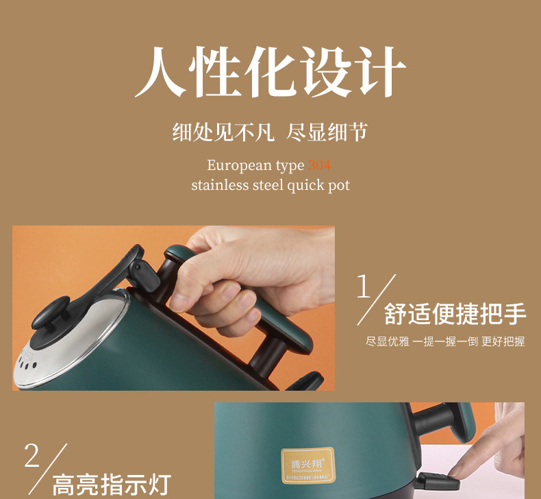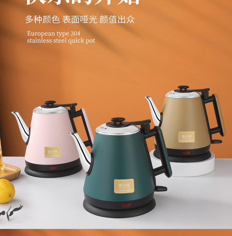 Teng Xingxiang 1.2L 긴 입 전기 주전자 작은 베이킹 페인트 304 스테인레스 스틸 홈 티 포트스토어 가기