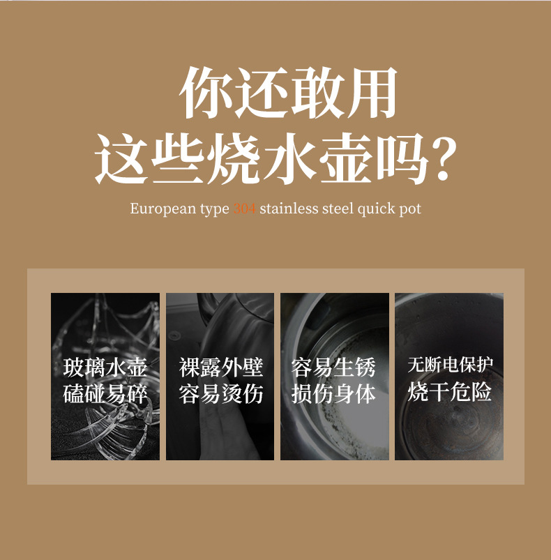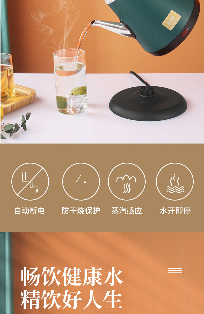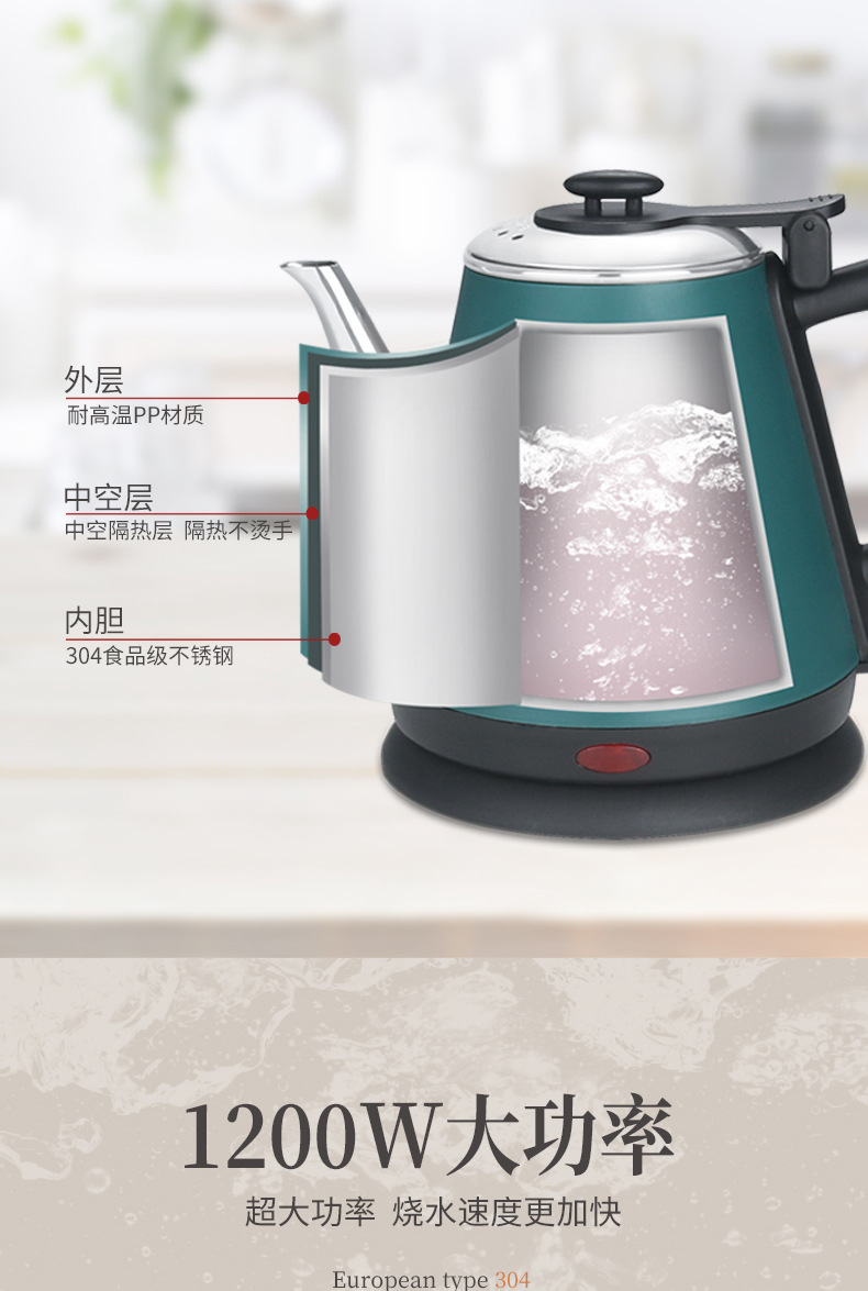 Teng Xingxiang 1.2L 긴 입 전기 주전자 작은 베이킹 페인트 304 스테인레스 스틸 홈 티 포트