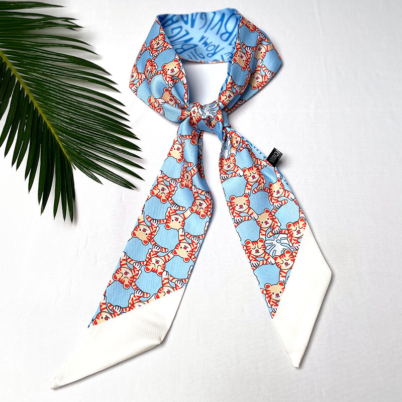 한국 스타일 신상품 뾰족한 꽃 프린트 리본 긴 실크 스카프 여성용 좁은 다기능 모든 매치 장식 리본 작은 스카프스토어 가기