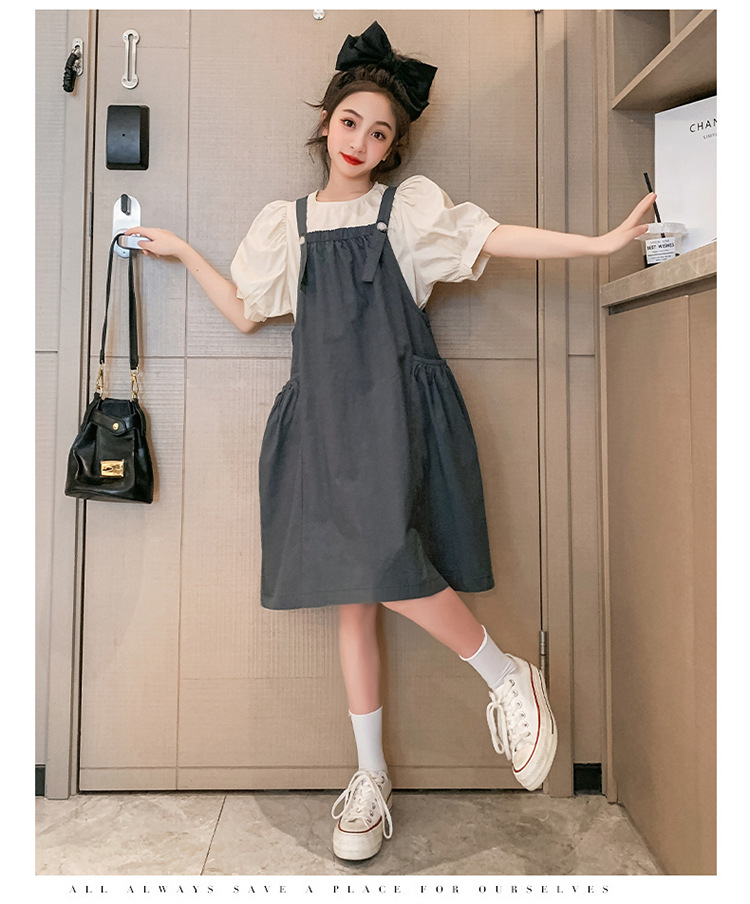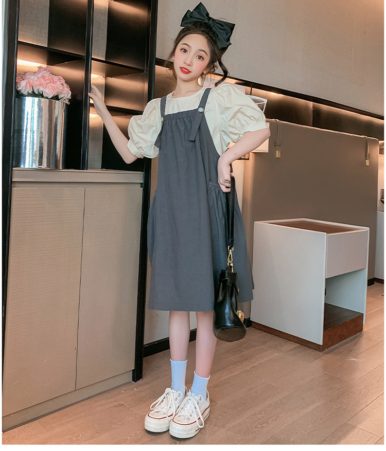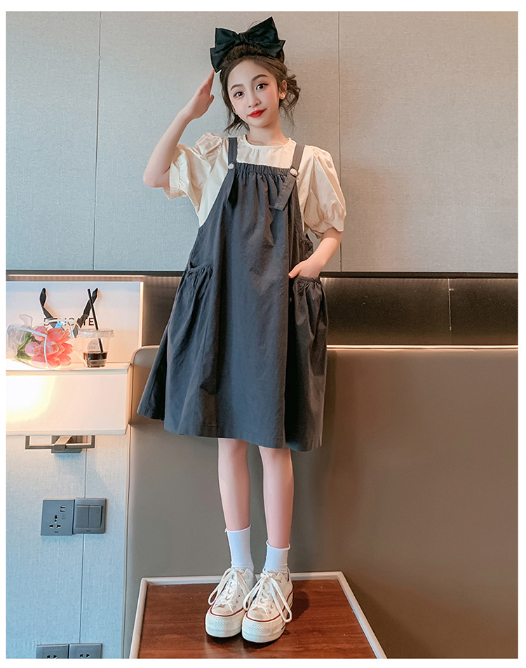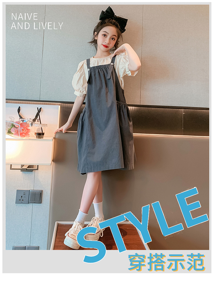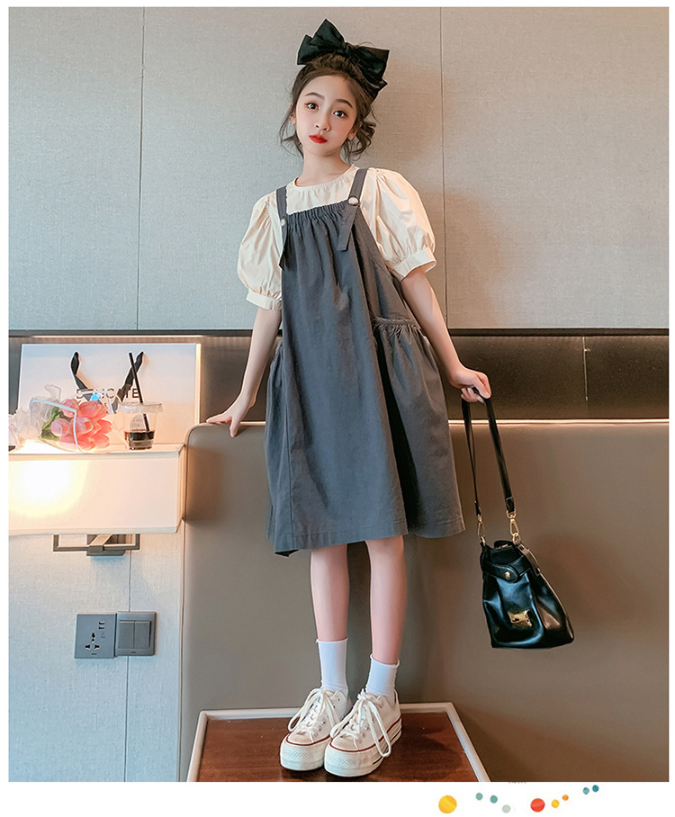 여자 원피스 여름 2023 새로운 어린이 치마 여름 서양 스타일 공주 치마 여자의 큰 어린이 스트랩 스커트 세트