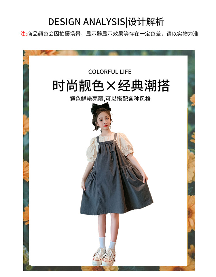 여자 원피스 여름 2023 새로운 어린이 치마 여름 서양 스타일 공주 치마 여자의 큰 어린이 스트랩 스커트 세트스토어 가기
