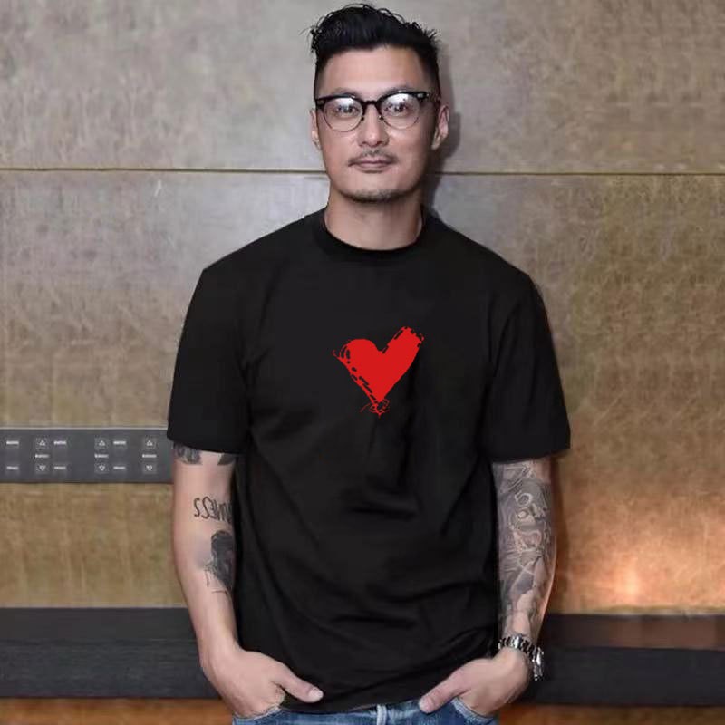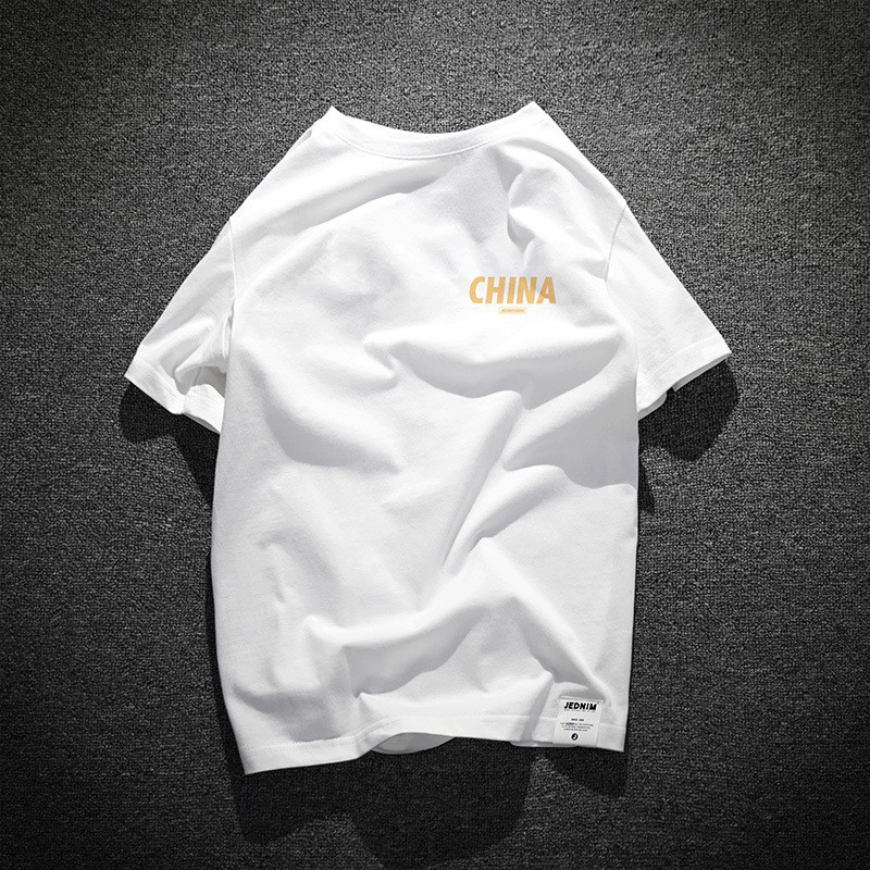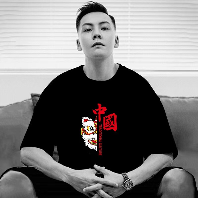 트렌디 브랜드 2025 여름 신작 반팔 티셔츠 남성용 루즈 반팔 라운드 넥 대형 순수 코튼 T 캐주얼 내셔널 패션 티셔츠