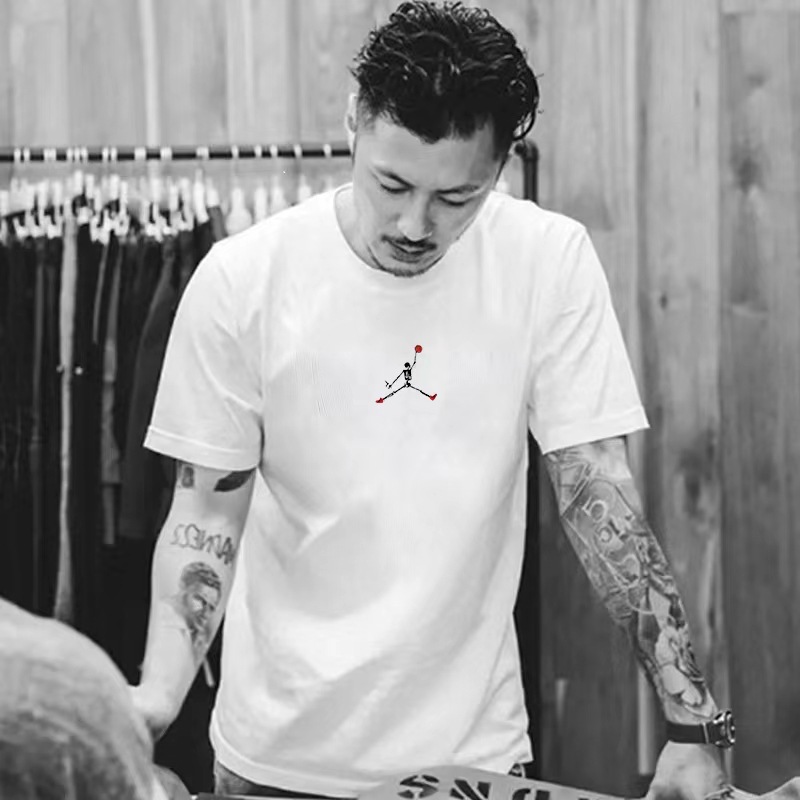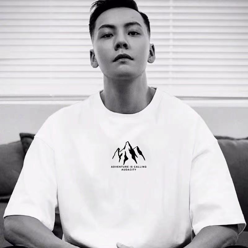 트렌디 브랜드 2025 여름 신작 반팔 티셔츠 남성용 루즈 반팔 라운드 넥 대형 순수 코튼 T 캐주얼 내셔널 패션 티셔츠스토어 가기