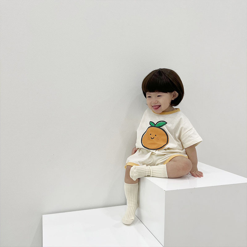 In Baby 한국식 유아 반팔 세트 면 귀여운 과일 티셔츠 패딩 방귀 반바지 투피스 세트스토어 가기