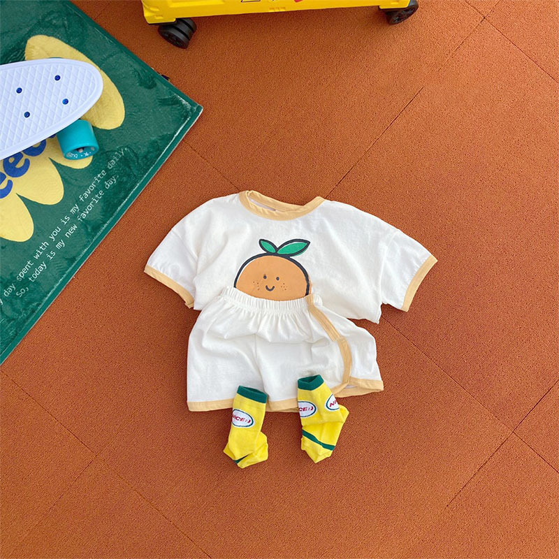 In Baby 한국식 유아 반팔 세트 면 귀여운 과일 티셔츠 패딩 방귀 반바지 투피스 세트