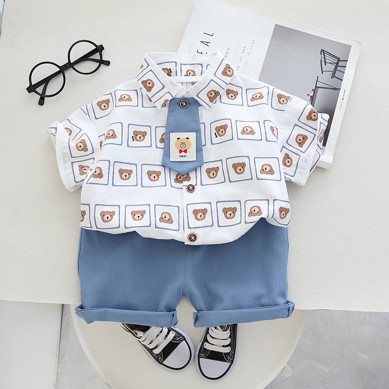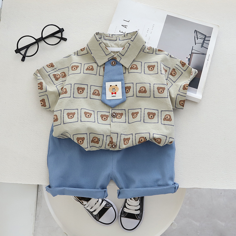소년 세트 한국 잘 생긴 소년 여름 새로운 스타일 셔츠 넥타이 세트 1-3 세 어린이 반팔 4스토어 가기