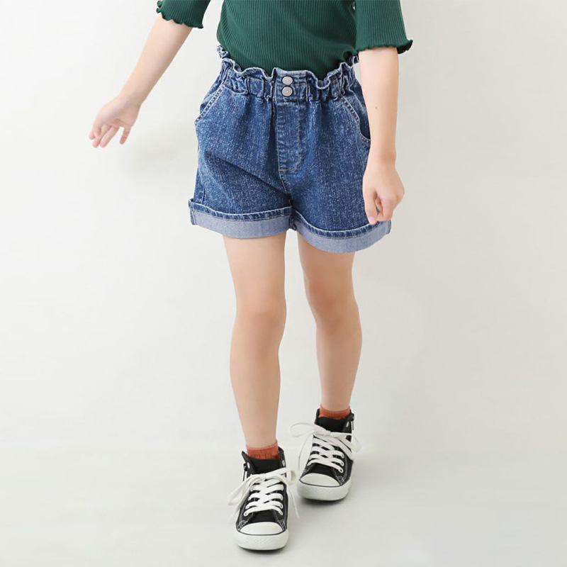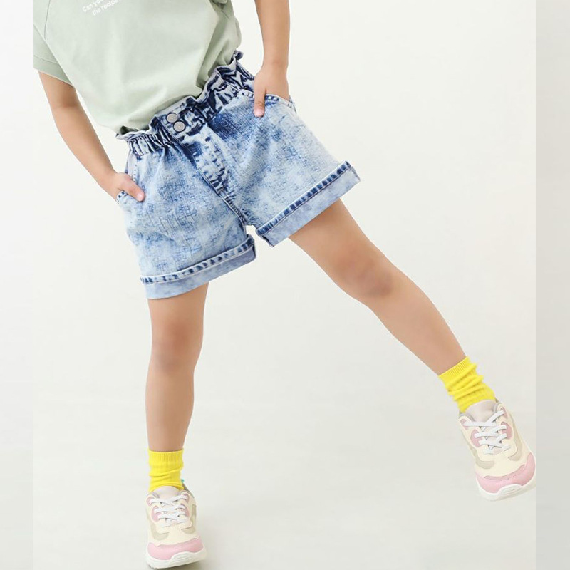 2023 여름 새로운 아동복 데님 반바지 모든 매치 세탁 탄성 허리 여성 데님 유행 청바지스토어 가기