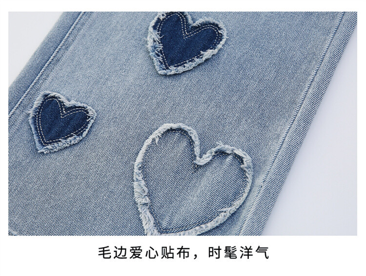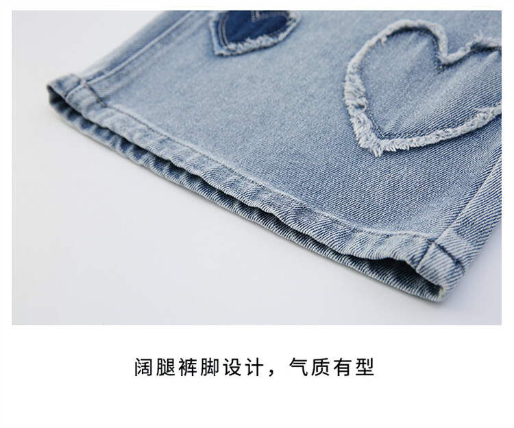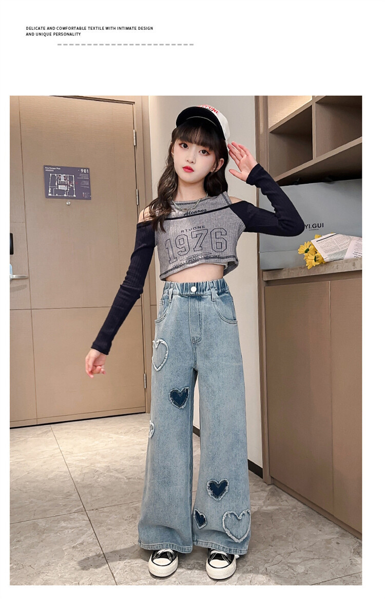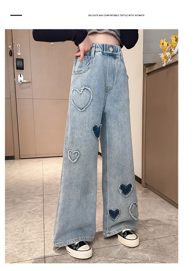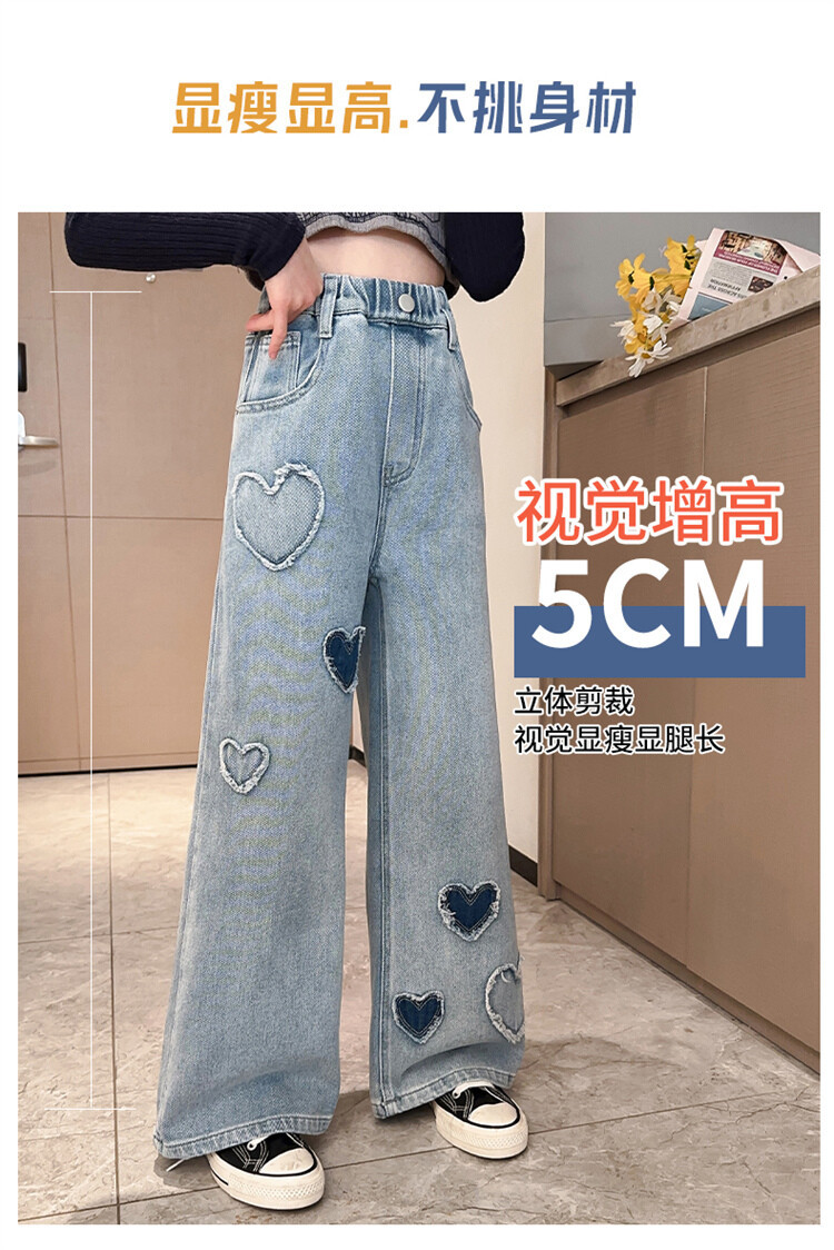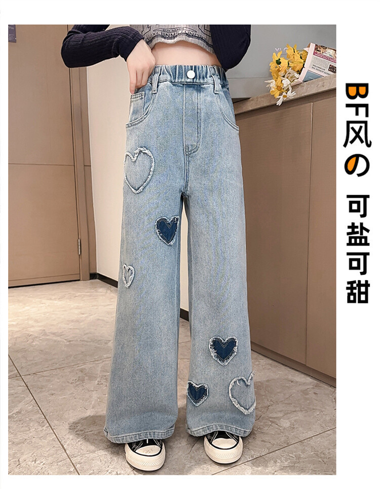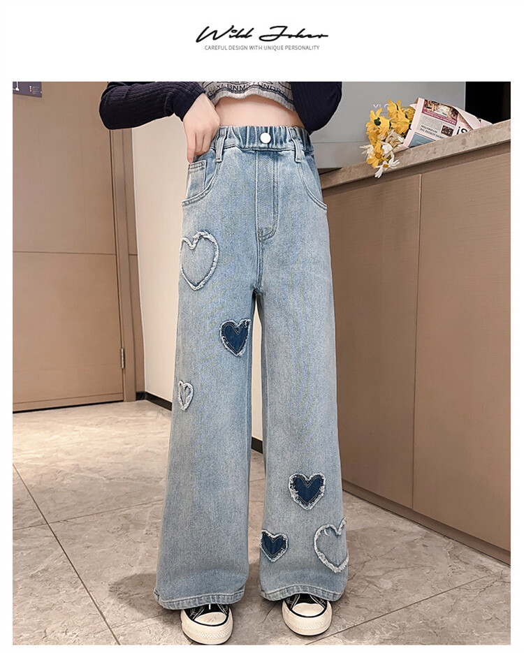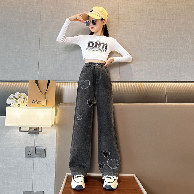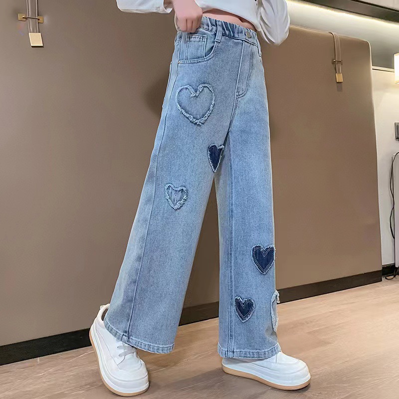 여자 사랑 원시 가장자리 데님 넓은 다리 바지 2025 새로운 바지 어린이 느슨한 중대형 어린이 겉옷 봄, 가을 바지스토어 가기