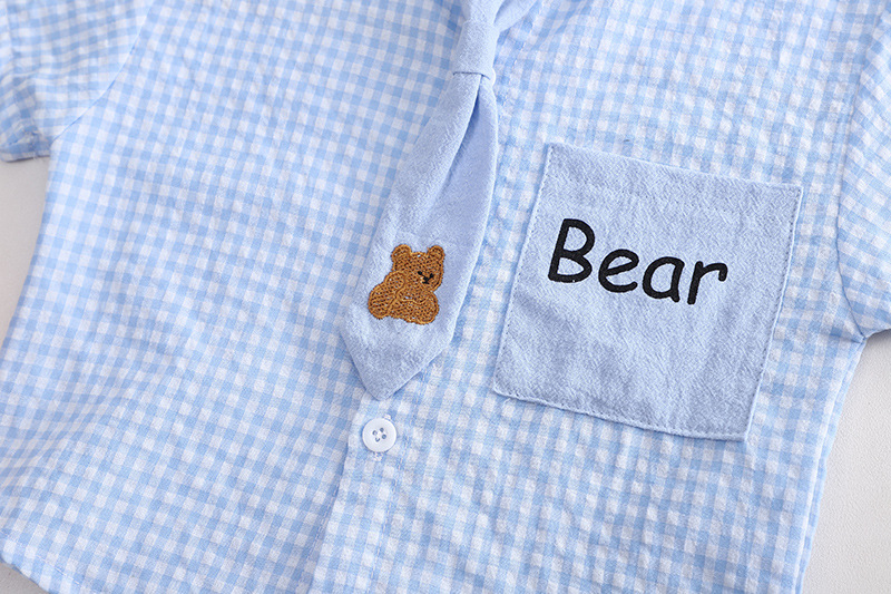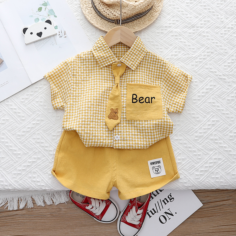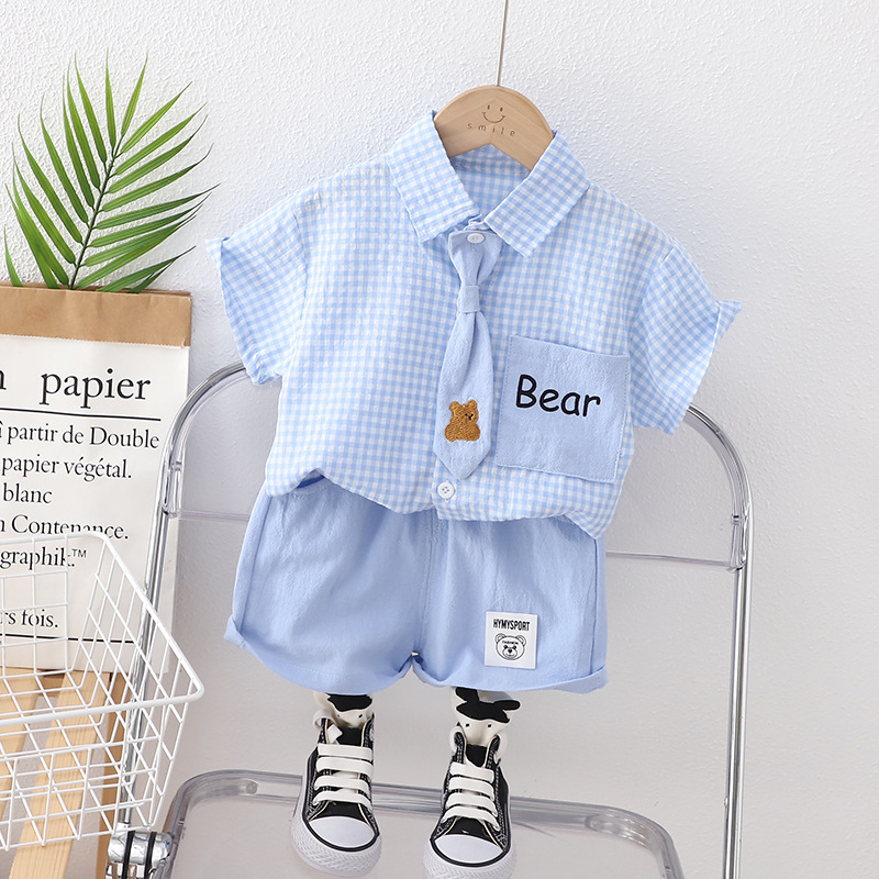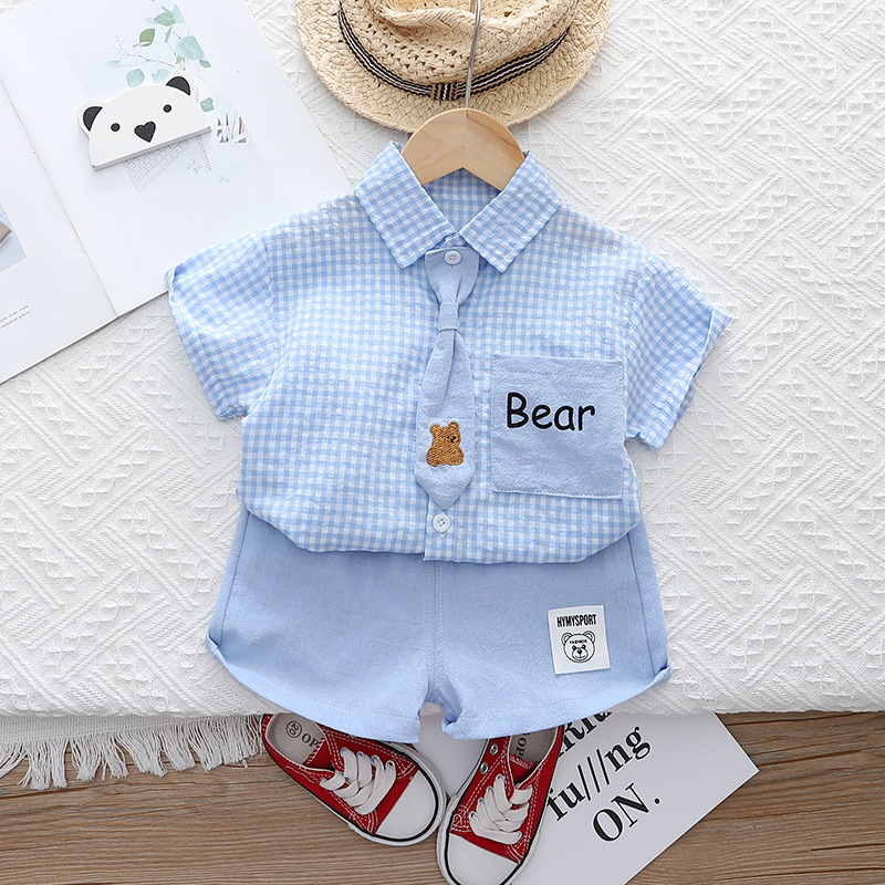 소년 잘 생긴 얇은 반팔 셔츠 2023 새로운 어린이 반팔 세트 면 어린이 얇은 반바지 여름 옷스토어 가기
