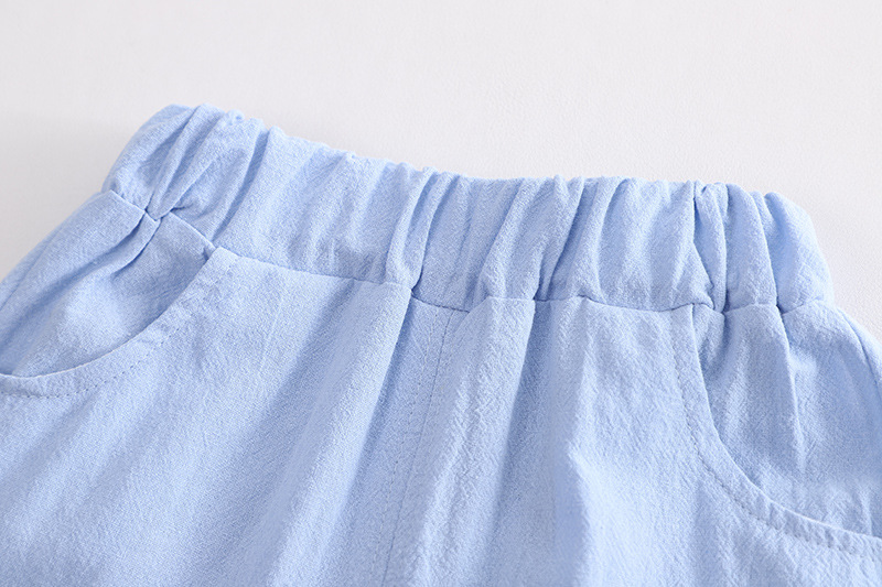 소년 잘 생긴 얇은 반팔 셔츠 2023 새로운 어린이 반팔 세트 면 어린이 얇은 반바지 여름 옷