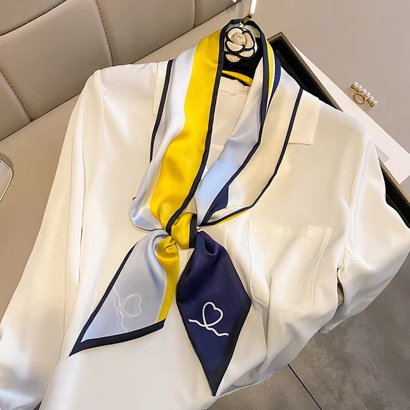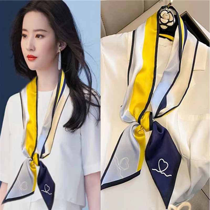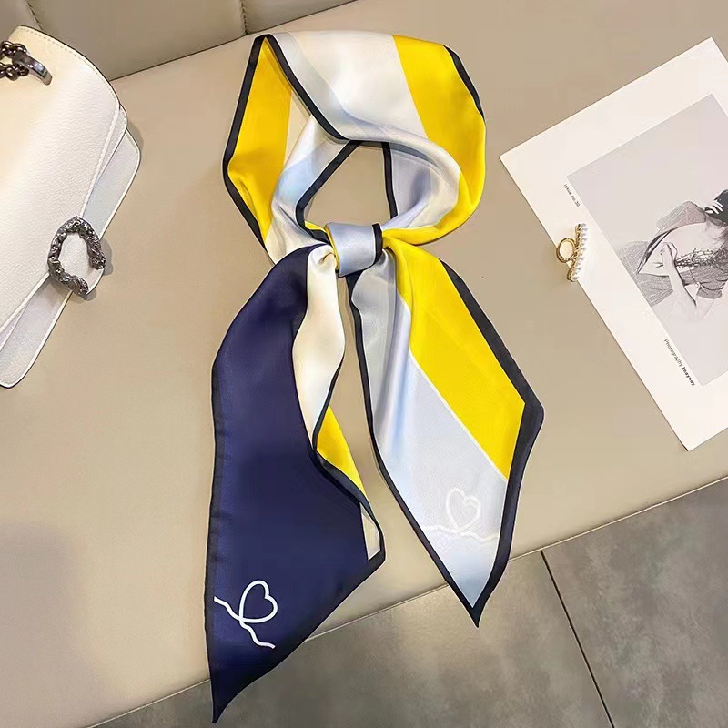 2023 새로운 봄과 가을 한국식 컬러 블록 롱 스카프 여성용 프랑스 스타일 헤어 벨트 장식 스카프 작은 스카프 넥타이 가방 벨트