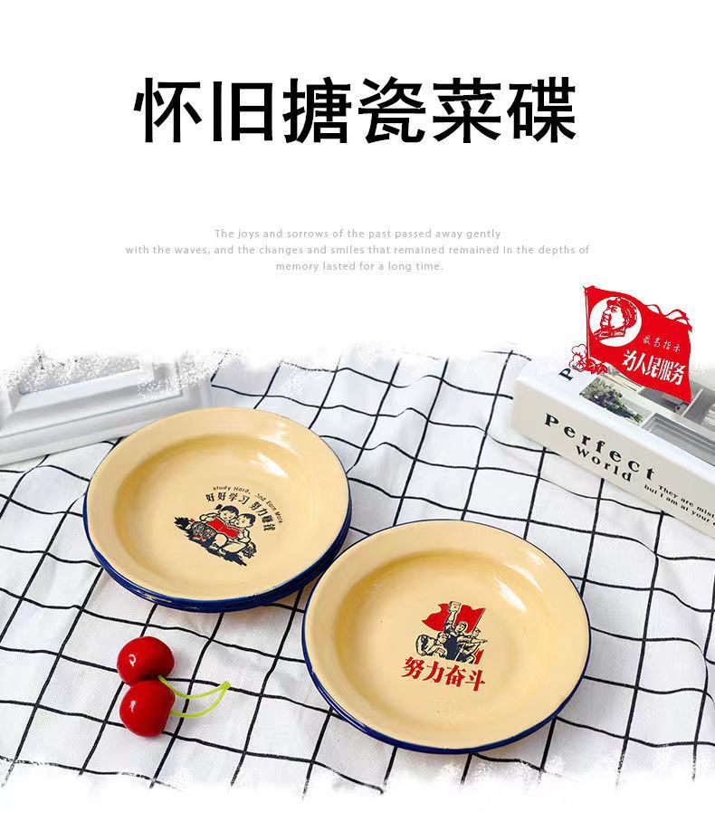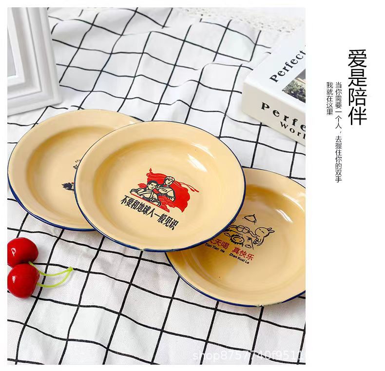 복고풍 에나멜 접시 테마 레스토랑 간식 접시 과일 접시 훠궈 꼬치 로고 인쇄 식기구구이 접시스토어 가기
