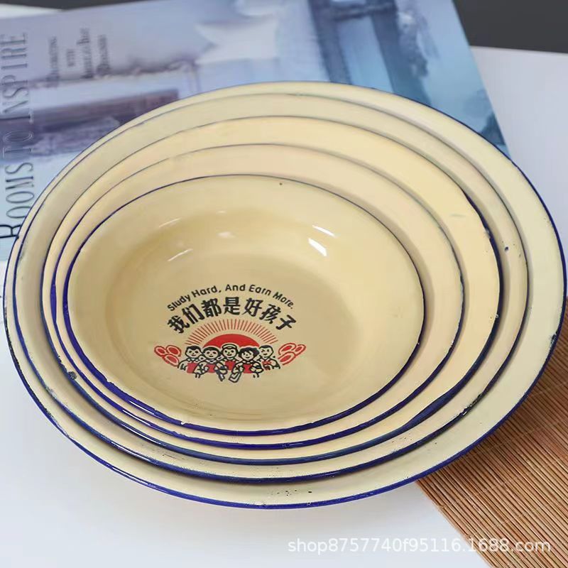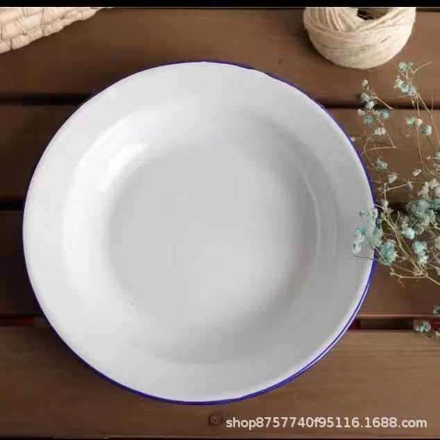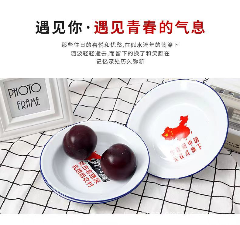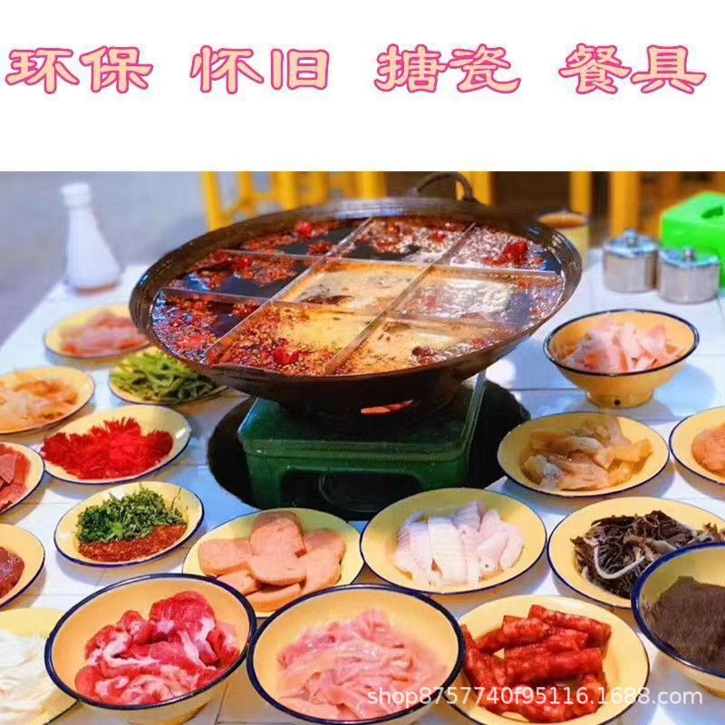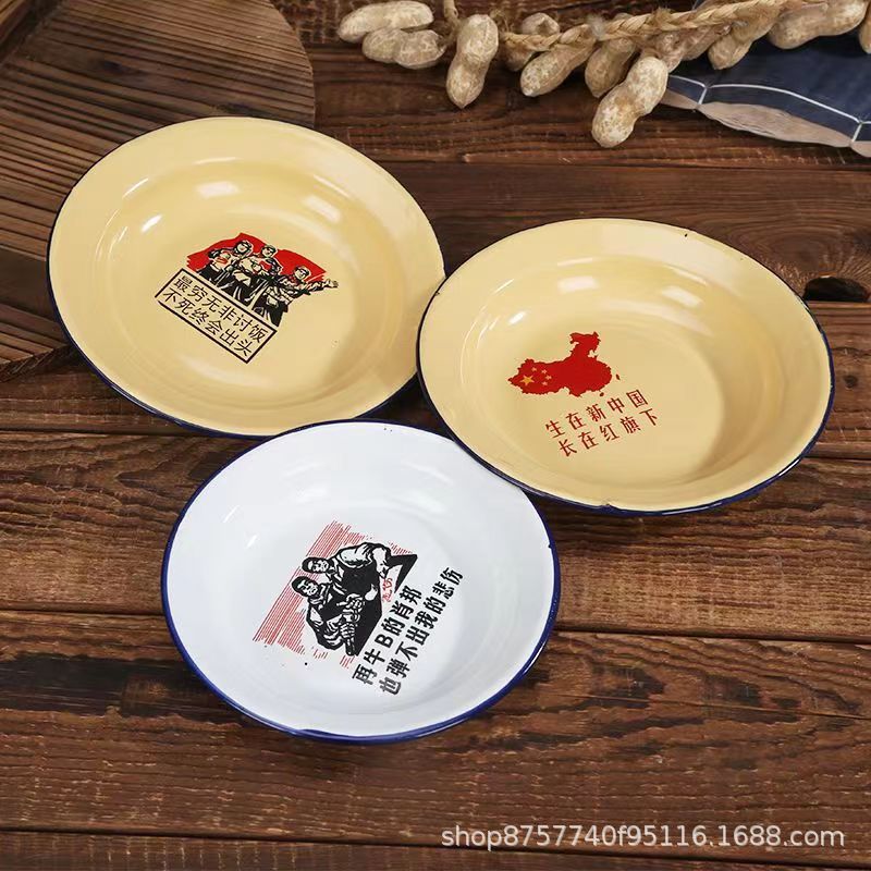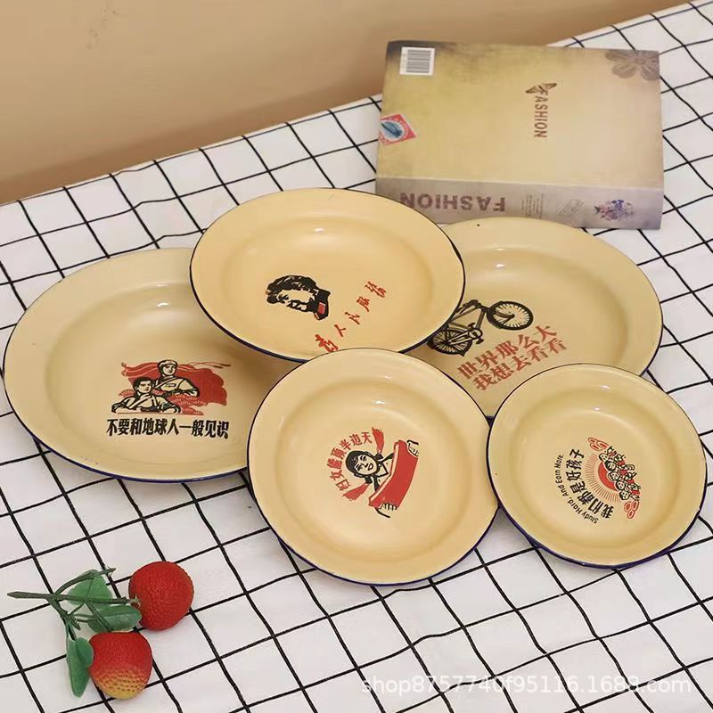 복고풍 에나멜 접시 테마 레스토랑 간식 접시 과일 접시 훠궈 꼬치 로고 인쇄 식기구구이 접시