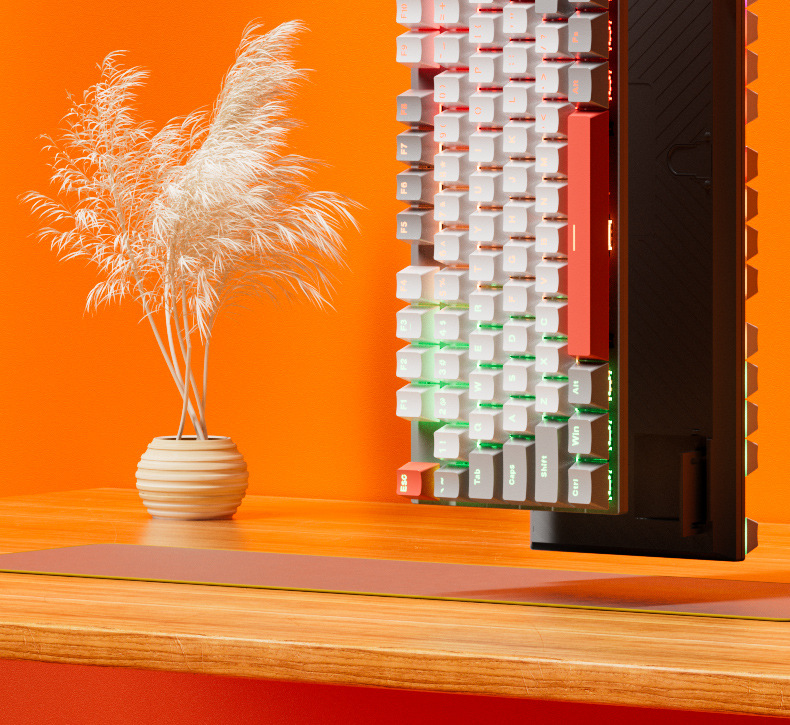 • 화이트 그레이 오렌지 청축 기계식 키보드