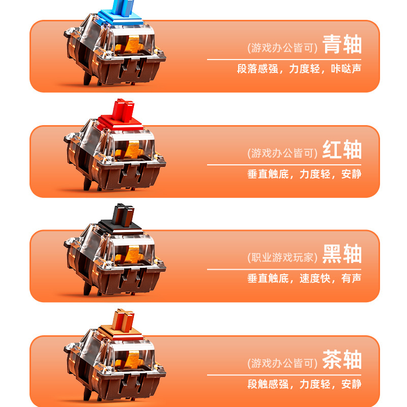 • 그레이 블랙 오렌지 레드 축 실제 기계식 키보드