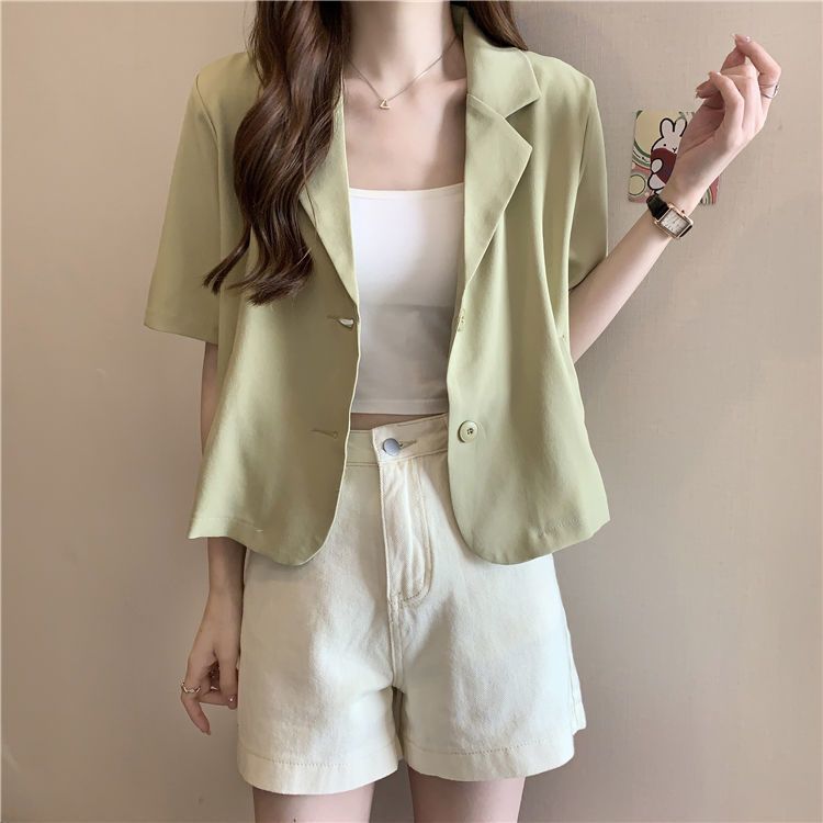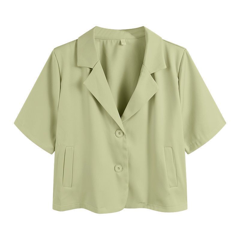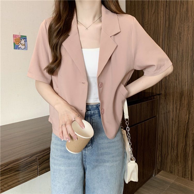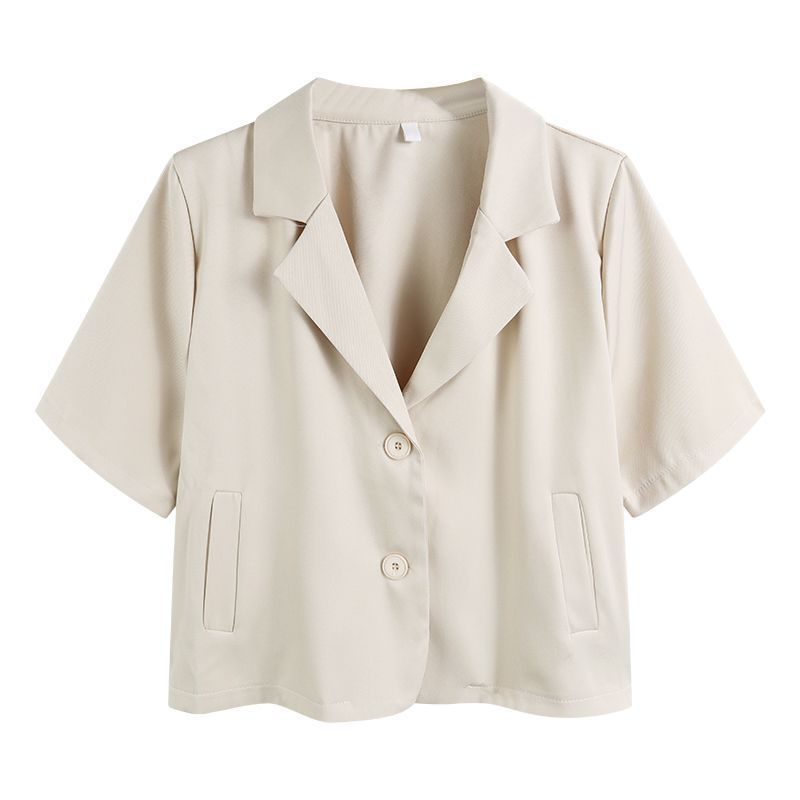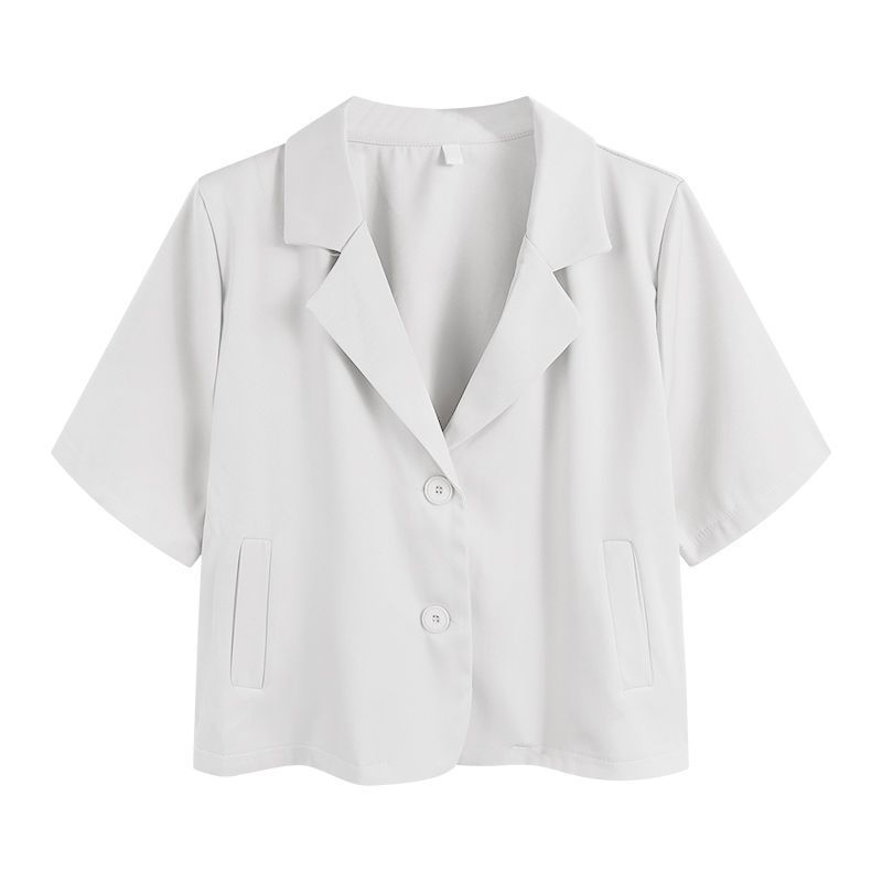 정장 칼라 반팔 셔츠 자켓 여성 여름 2023 새로운 디자인 틈새 얇은 셔츠 짧은 탑