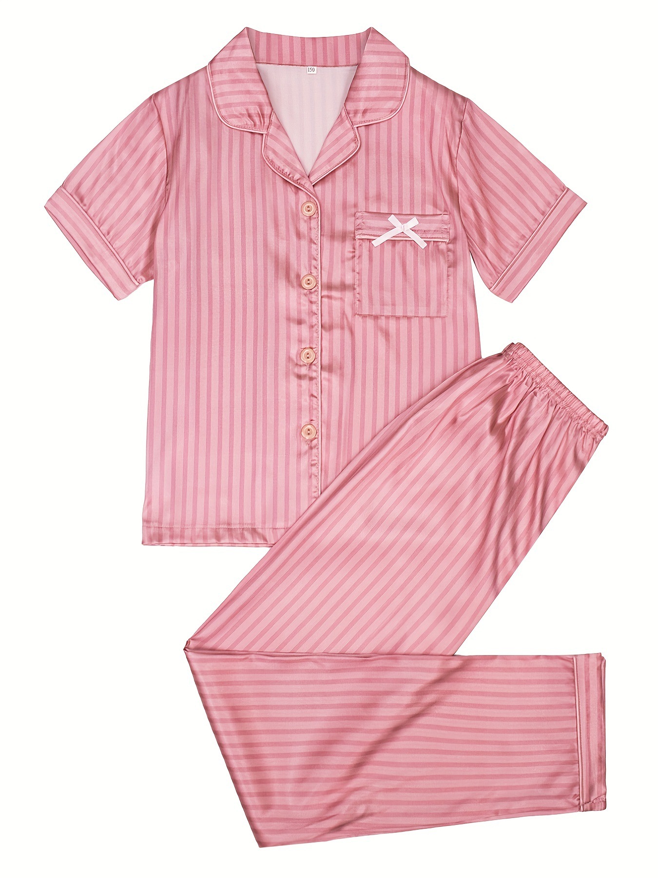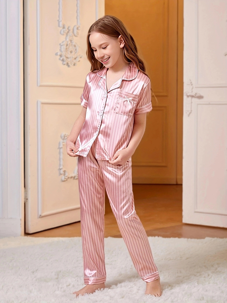 핑크 새틴 스트라이프 여아 잠옷 달콤한 여름 새로운 얇은 실크 같은 멋진 어린이 가정 옷 크로스 보더스토어 가기
