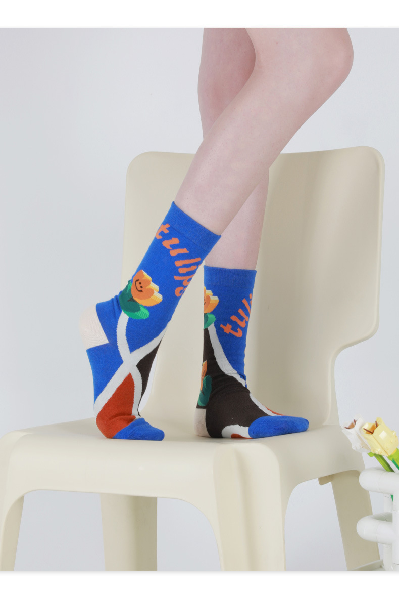 DAMAHOOV 양말 여성용 입체 빌딩 블록 꽃 시리즈 육안 3D 조수 양말 미드 튜브 롱 파일면 양말 통기성 캐주얼 양말스토어 가기