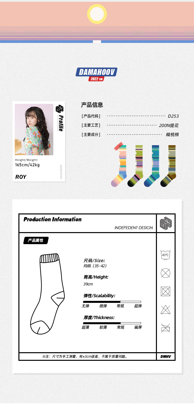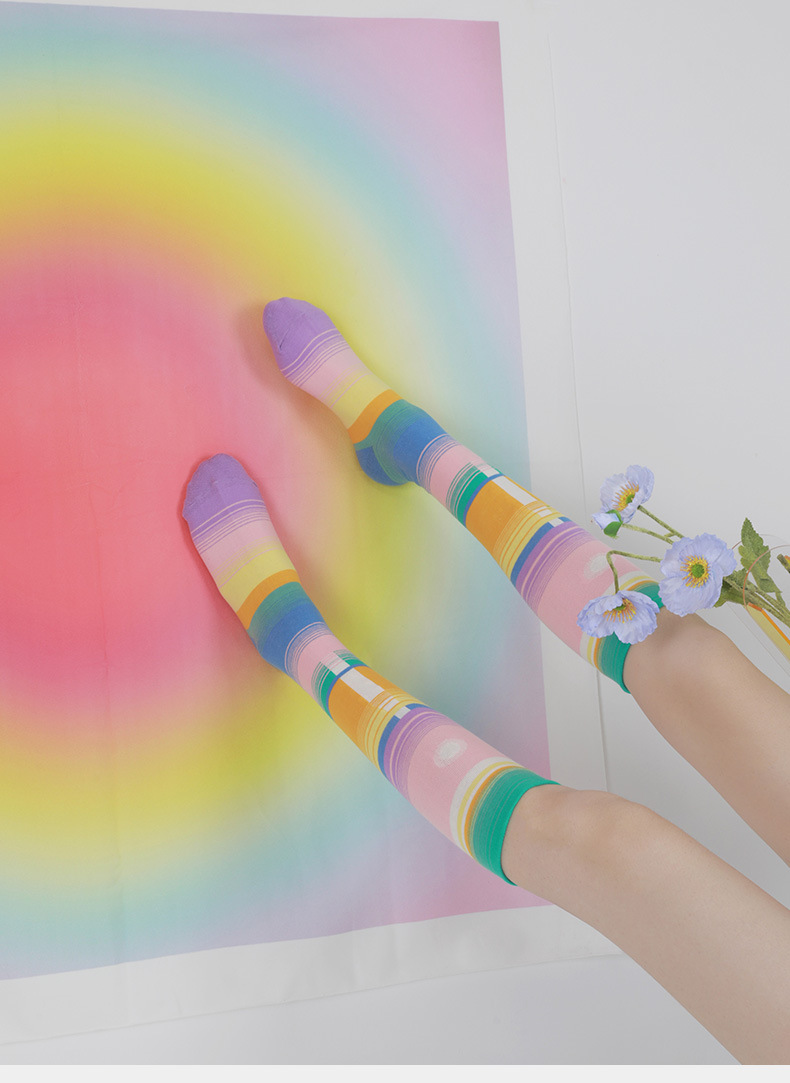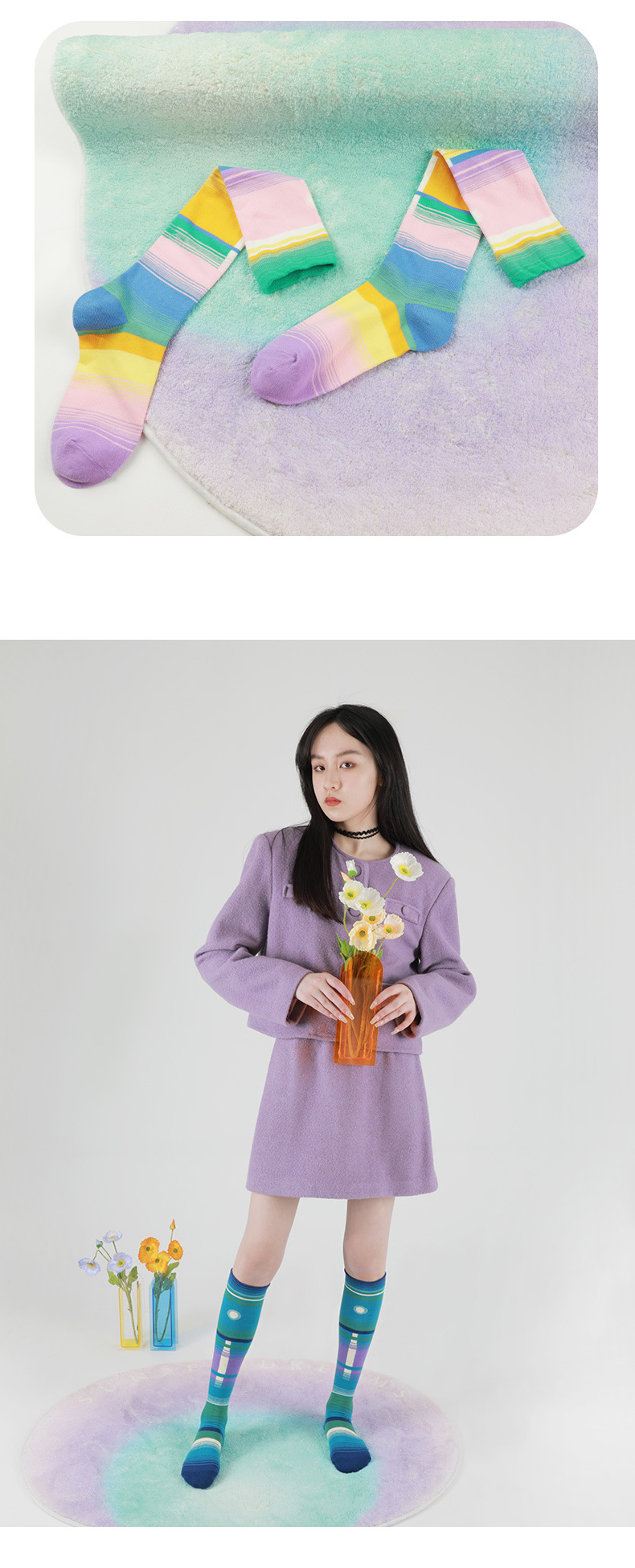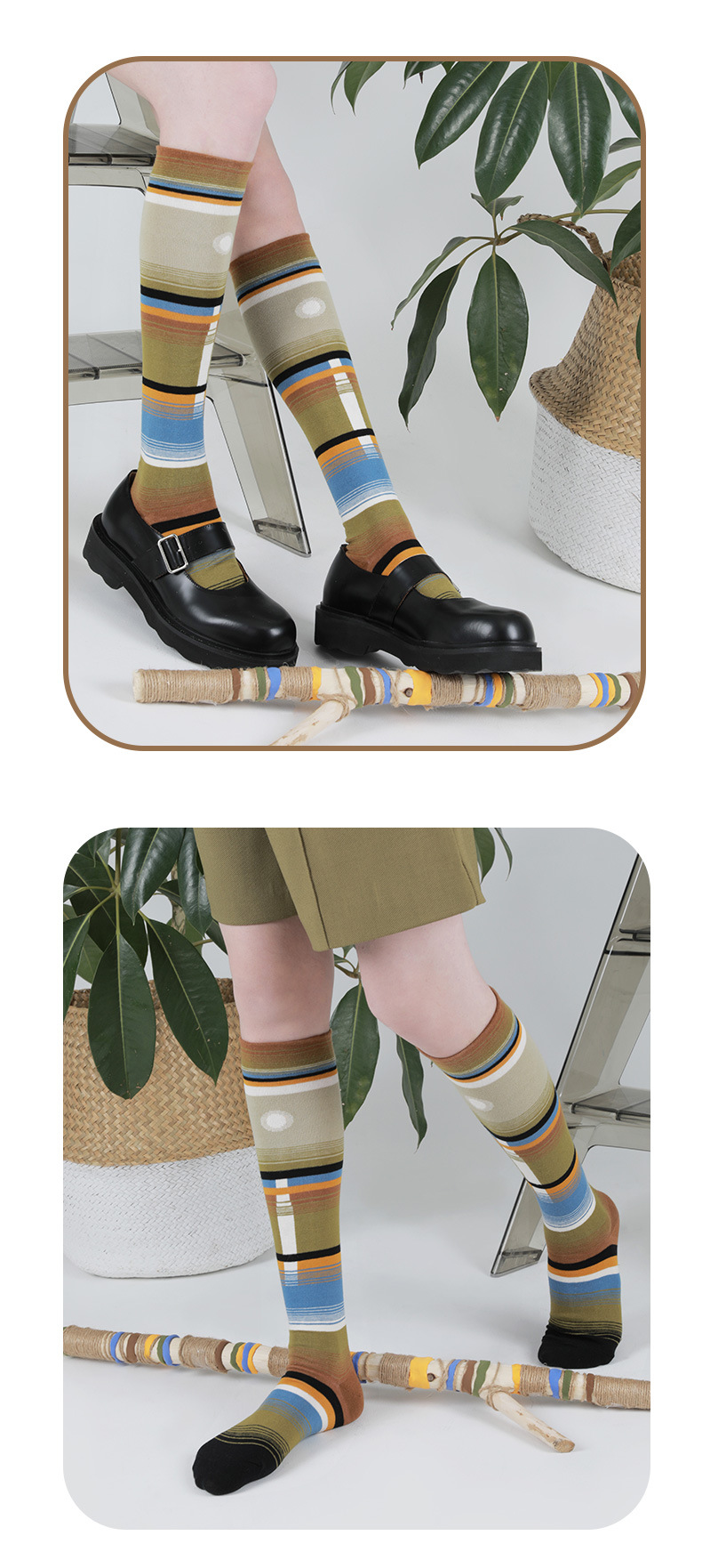 DAMAHOOV 오리지널 송아지 양말 빛 회절 시리즈 Y2K 성격 조수 양말 그라디언트 레트로 핫 걸 무릎 양말 면 양말스토어 가기