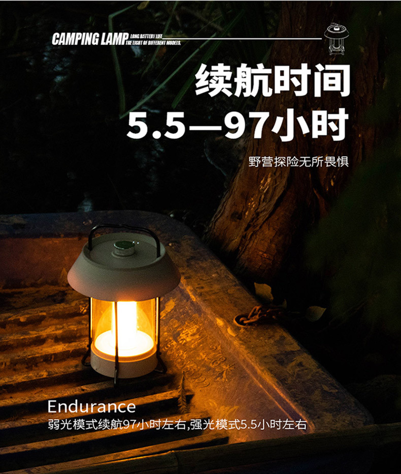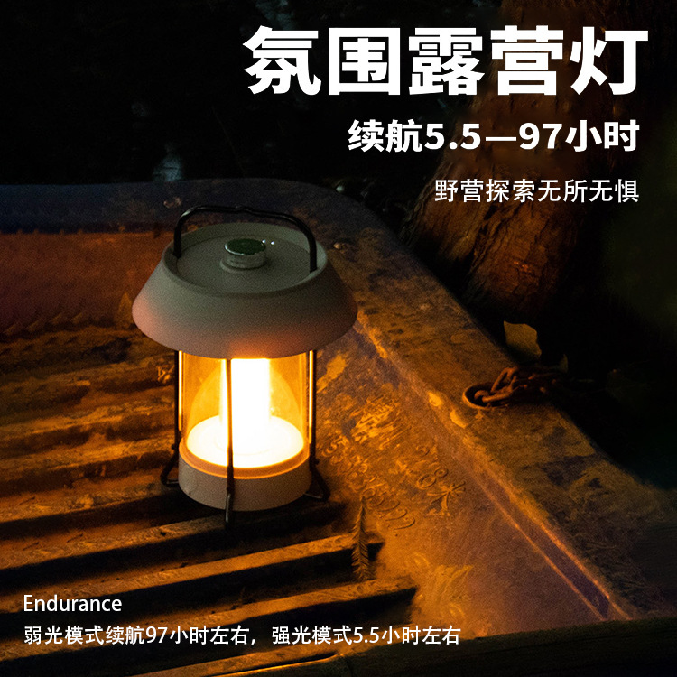 새로운 야외 캠핑 조명 긴 지구력 캠핑 텐트 조명 캠프 조명 분위기 조명 충전식 레트로 랜턴