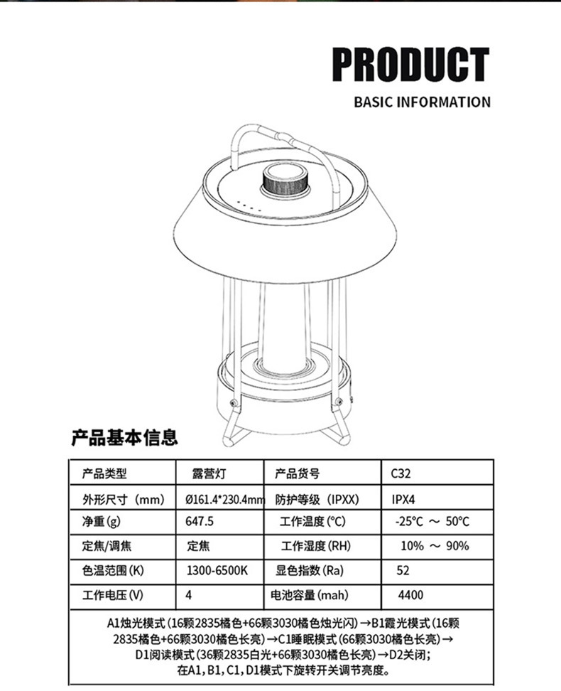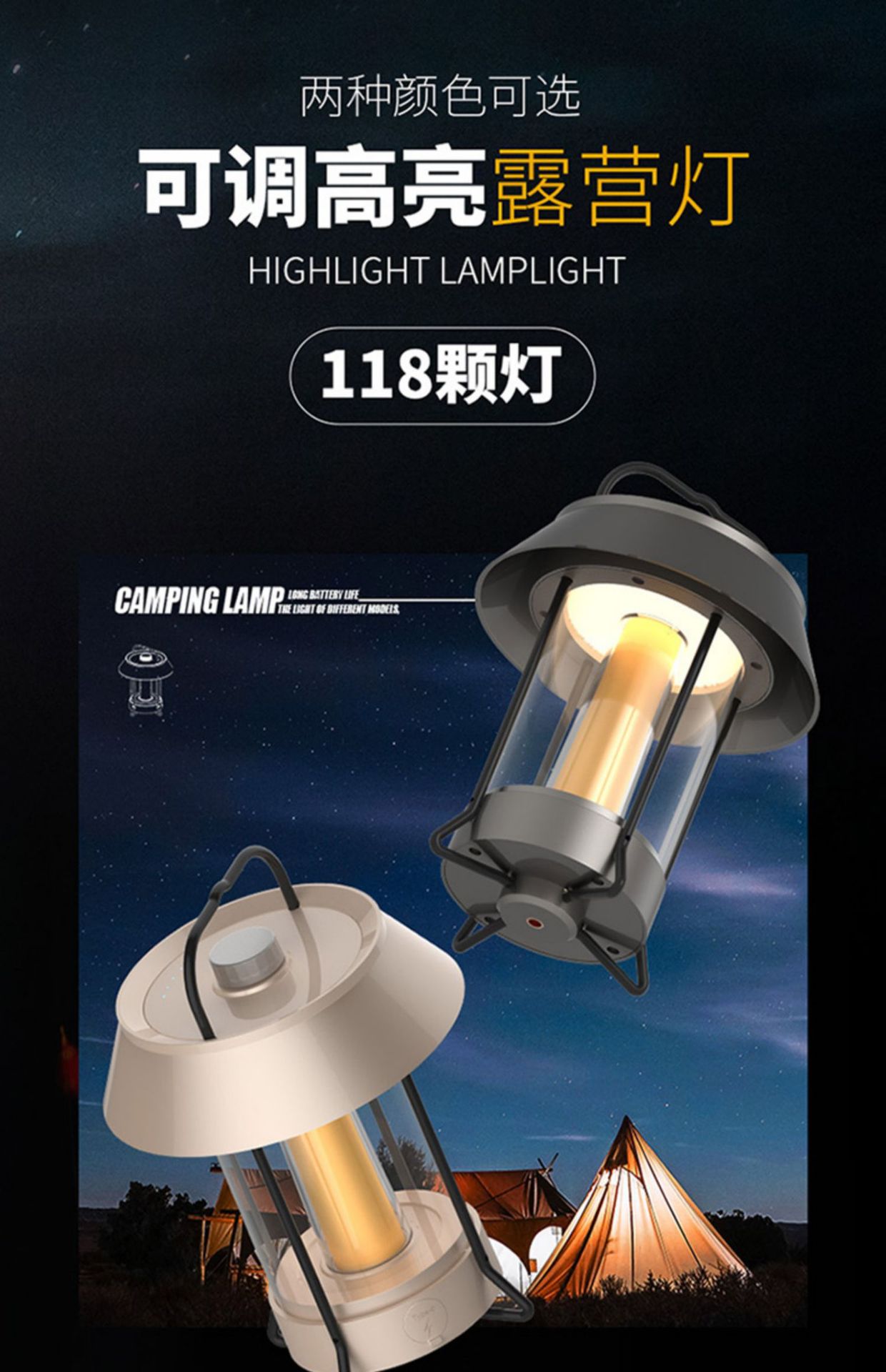 새로운 야외 캠핑 조명 긴 지구력 캠핑 텐트 조명 캠프 조명 분위기 조명 충전식 레트로 랜턴스토어 가기