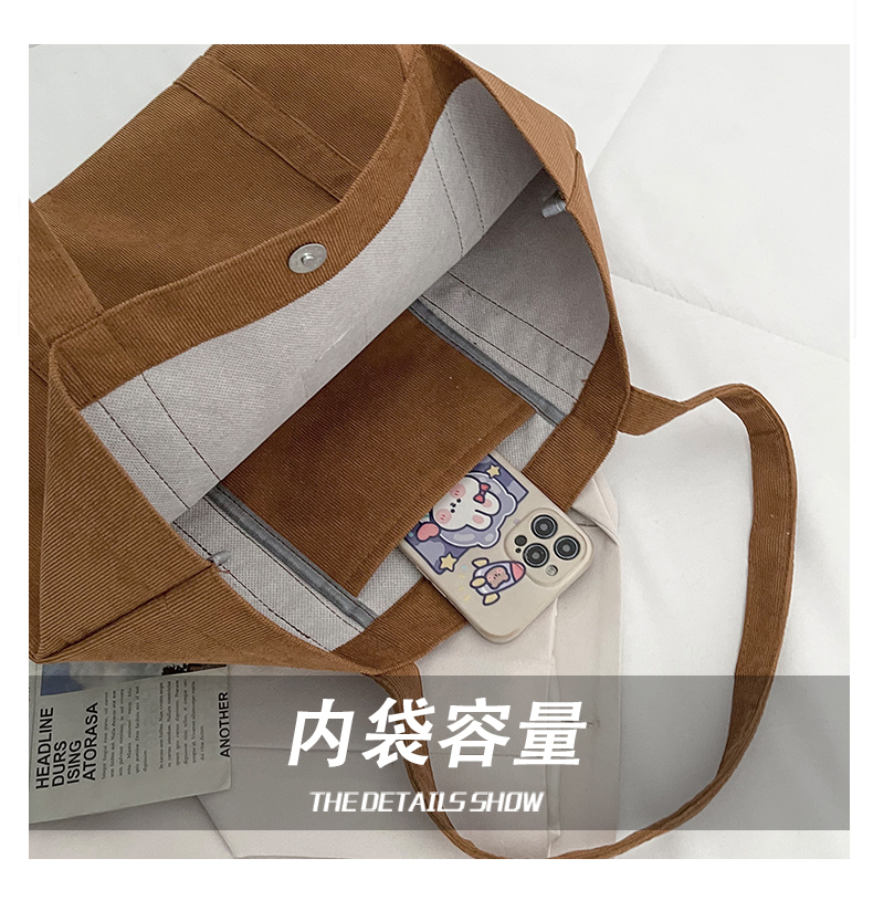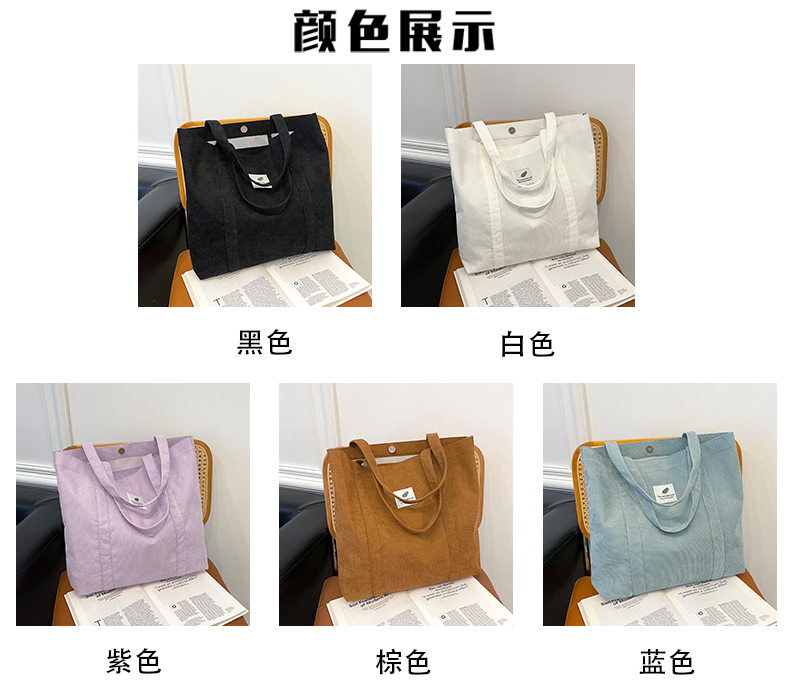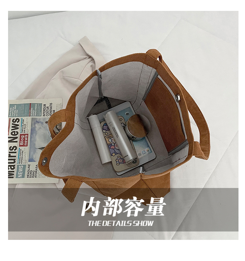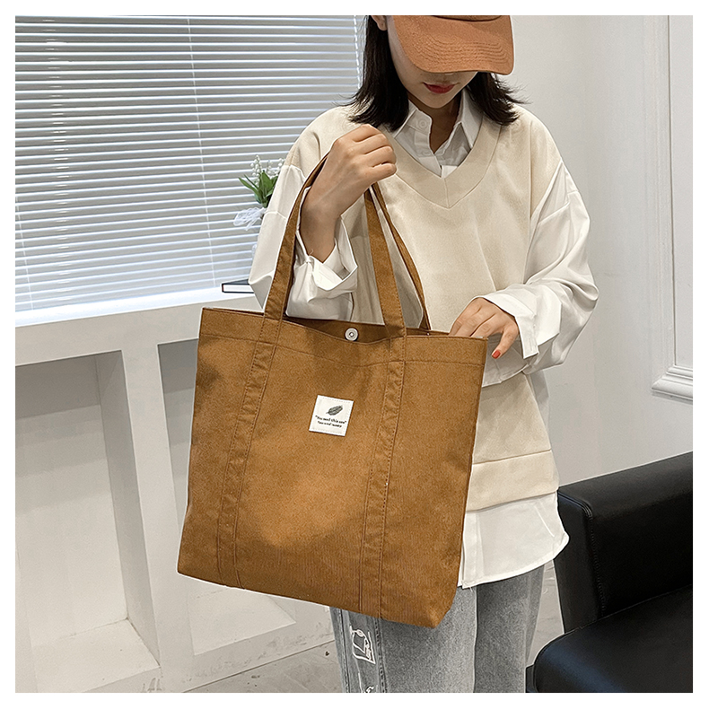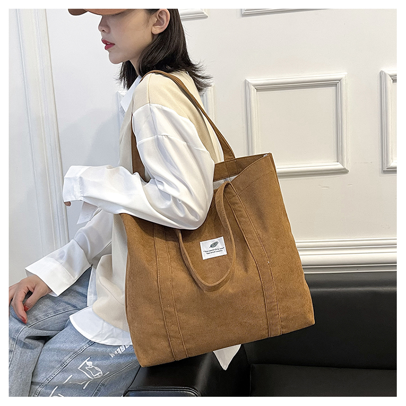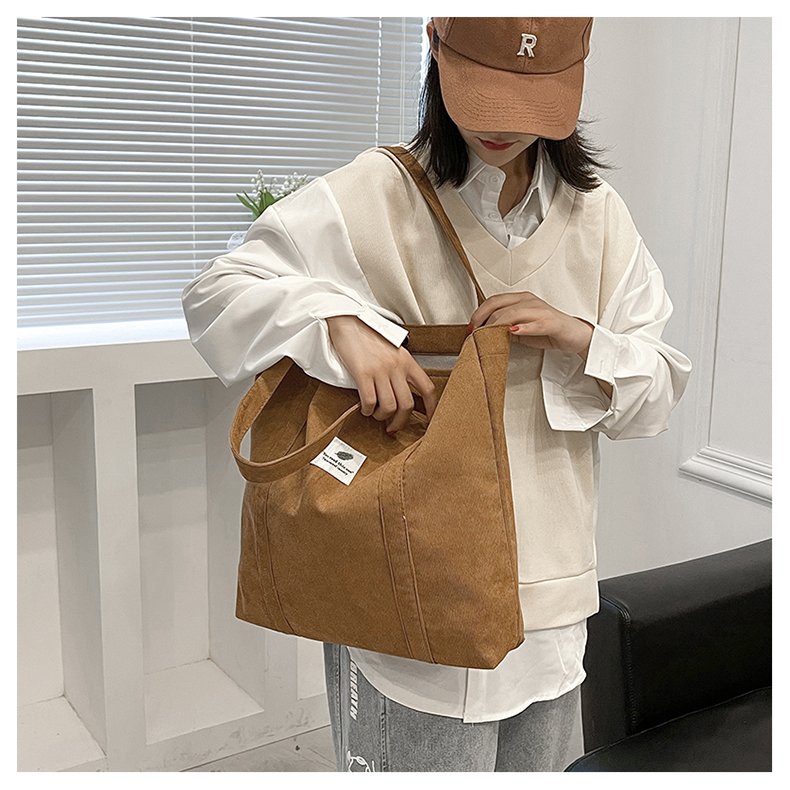 코듀로이 가방 대용량 캔버스 가방 여성 2024 새로운 간단한 학생 클래스 숄더 백 패션 핸드백