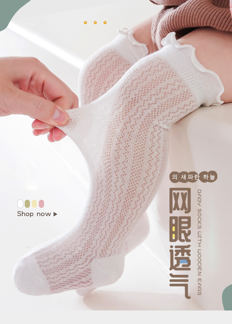 아기 모기 방지 양말 메쉬 얇은 봄과 여름 뼈없는 귀 가장자리 신생아 소년과 소녀를위한 느슨한 통기성 스타킹