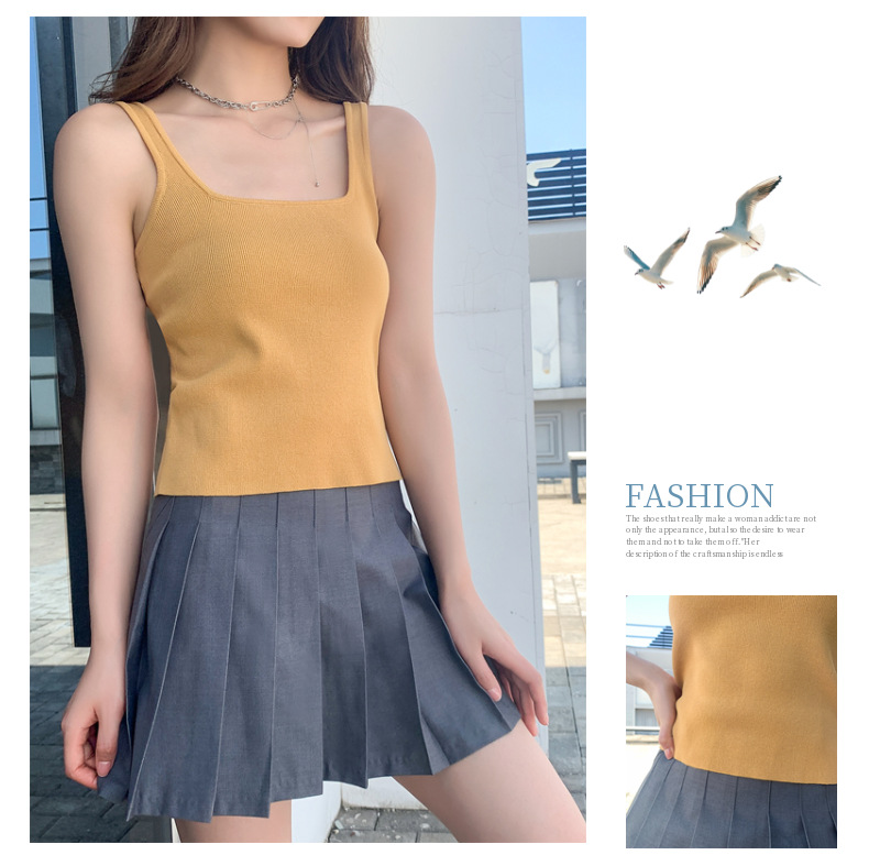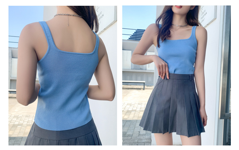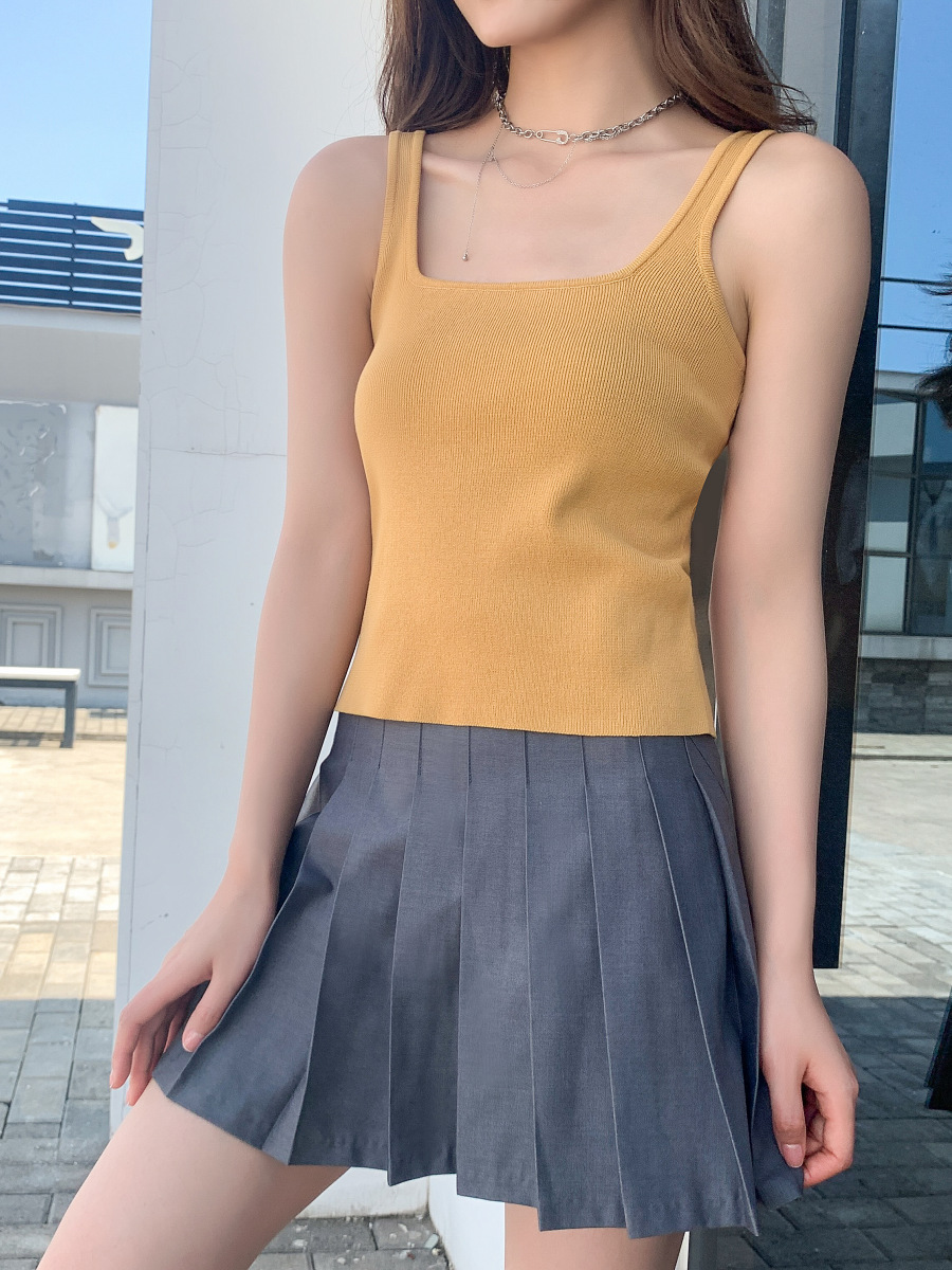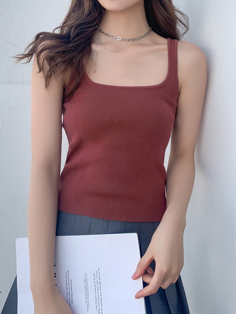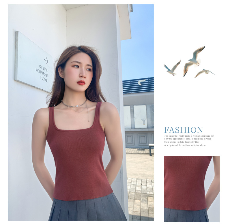 봄과 여름 2025 블랙 아이스 실크 니트 카미 솔 여성용 스파이스 걸스 아우터 탑 스퀘어 칼라 캐주얼 베이스