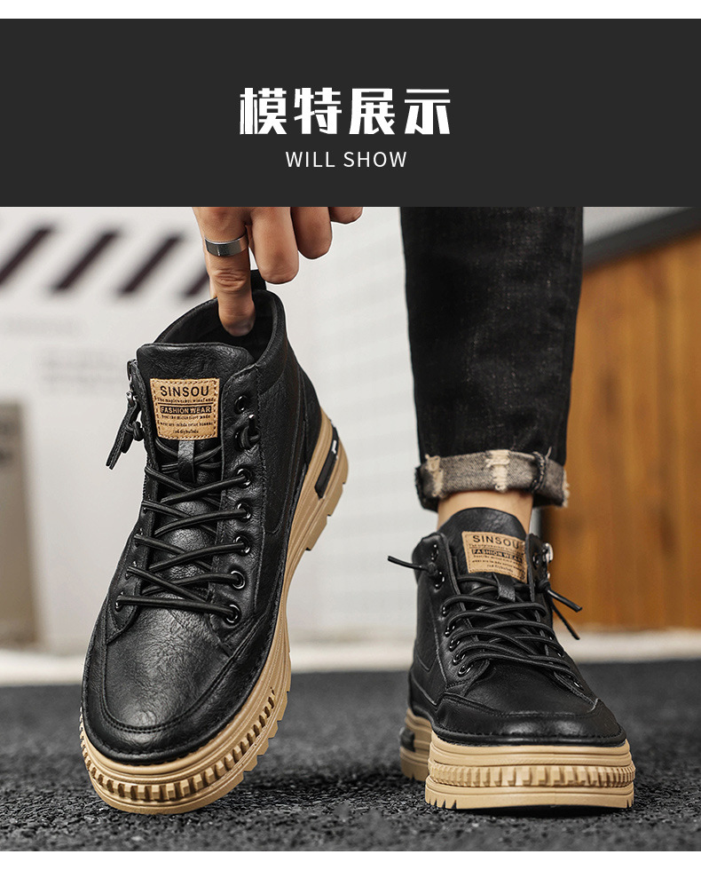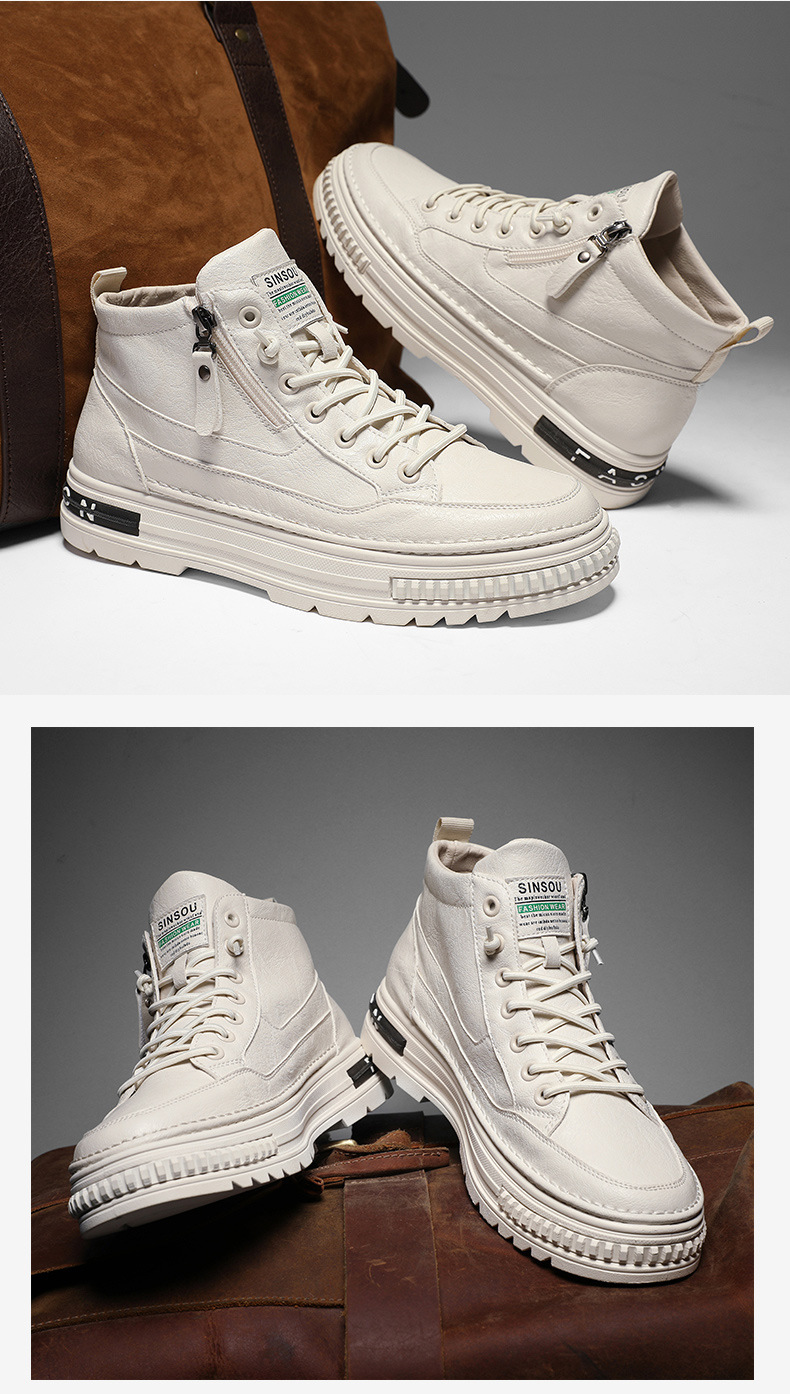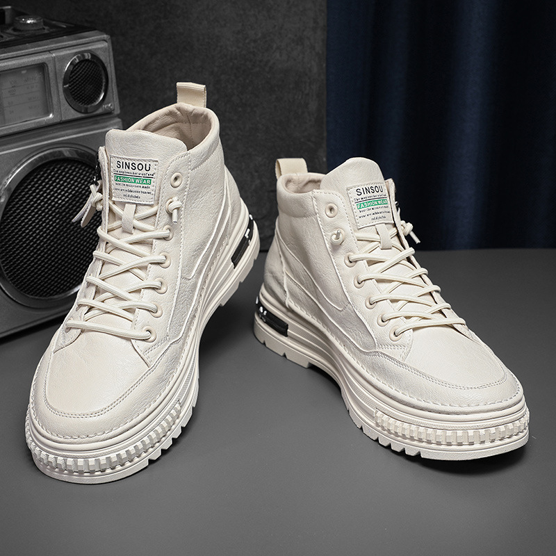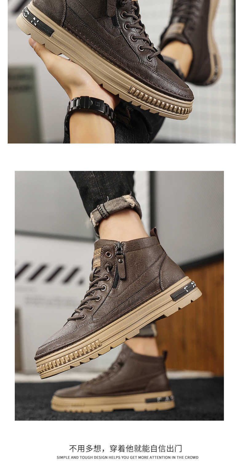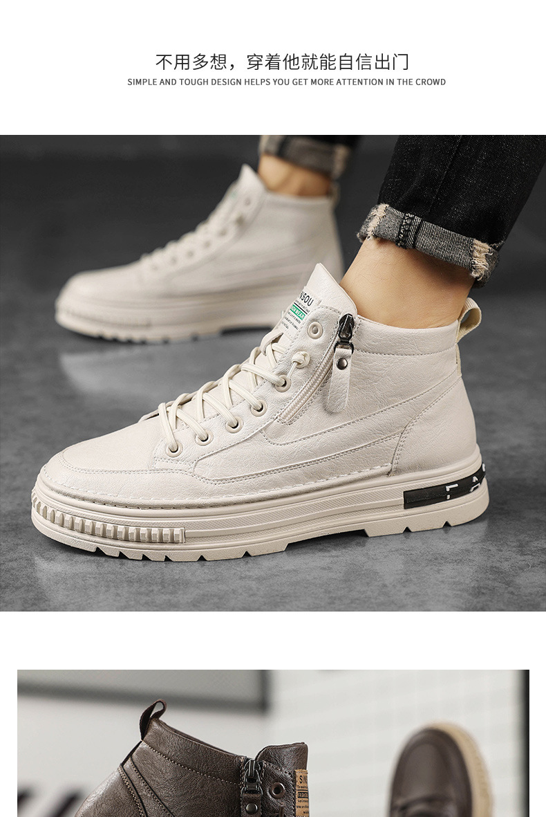 여름 남성 신발 2024 새로운 미끄럼 방지 높이 업 가죽 방수 캐주얼 신발 남성 원스텝 마틴 패션 신발스토어 가기