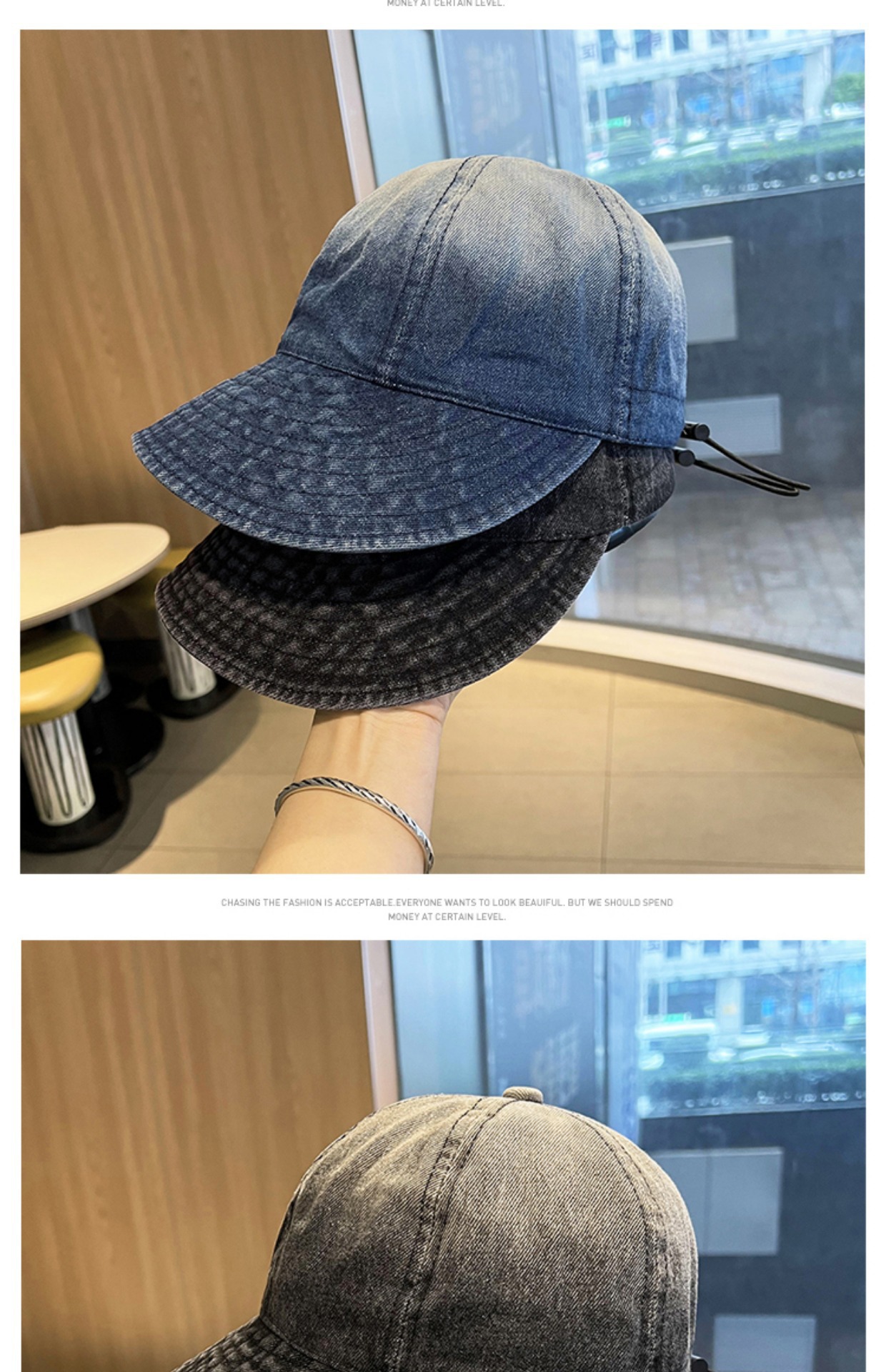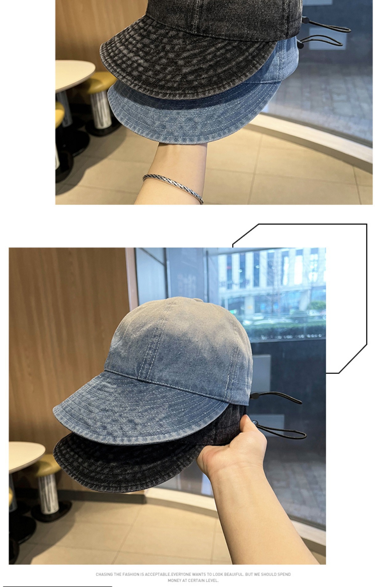 그라디언트 데님 오리 혀 어부 모자 여자의 봄과 여름 얼굴 작은 태양 보호 태양 모자 한국인 얼굴 덮는 야구 모자스토어 가기