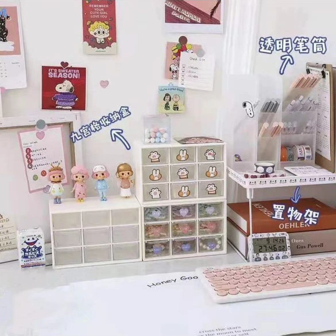 한국식 데스크탑 서랍형 보관함 9 그리드 미니 보관 투명 보석 Jiugong 콩 작은 기사 마무리 캐비닛스토어 가기