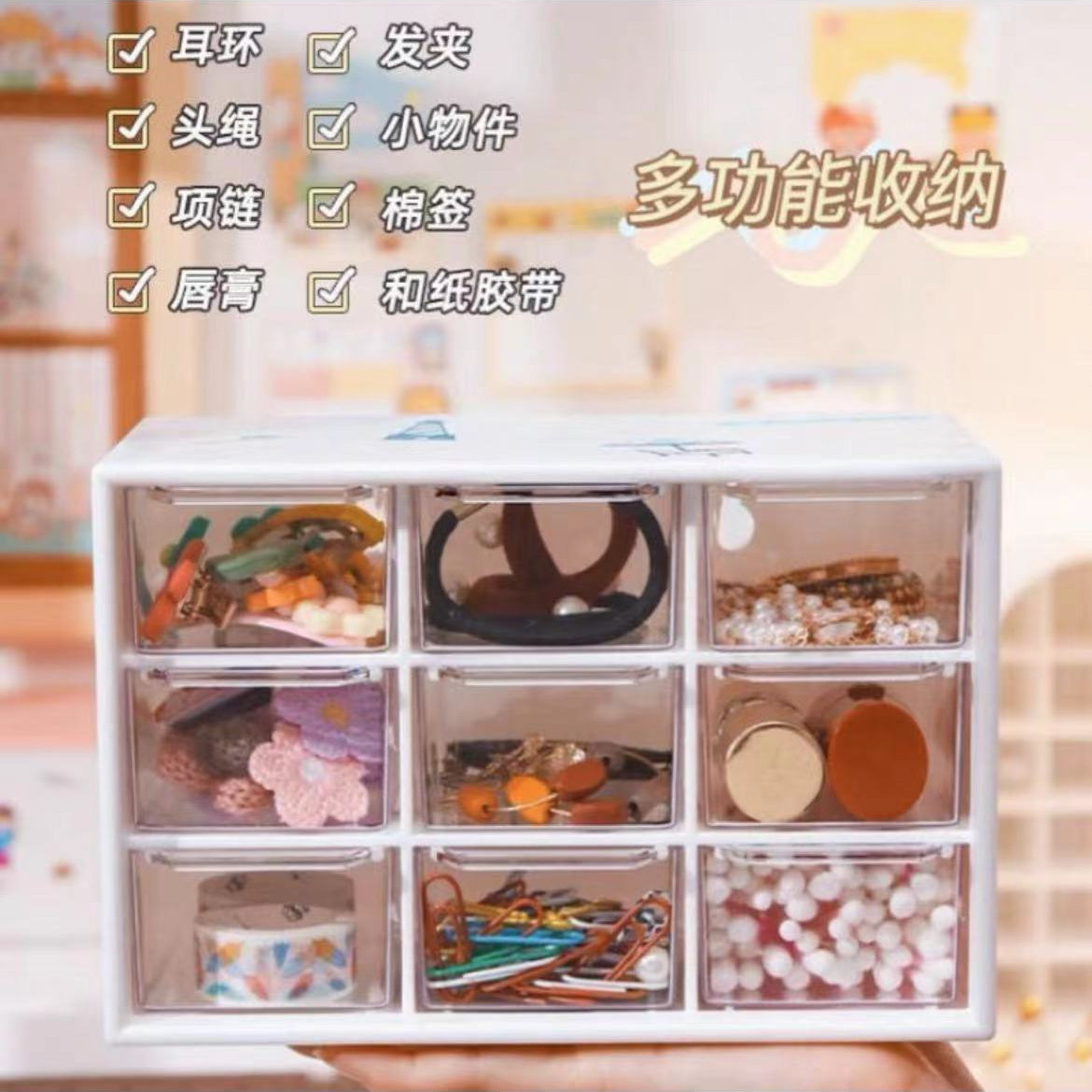 한국식 데스크탑 서랍형 보관함 9 그리드 미니 보관 투명 보석 Jiugong 콩 작은 기사 마무리 캐비닛