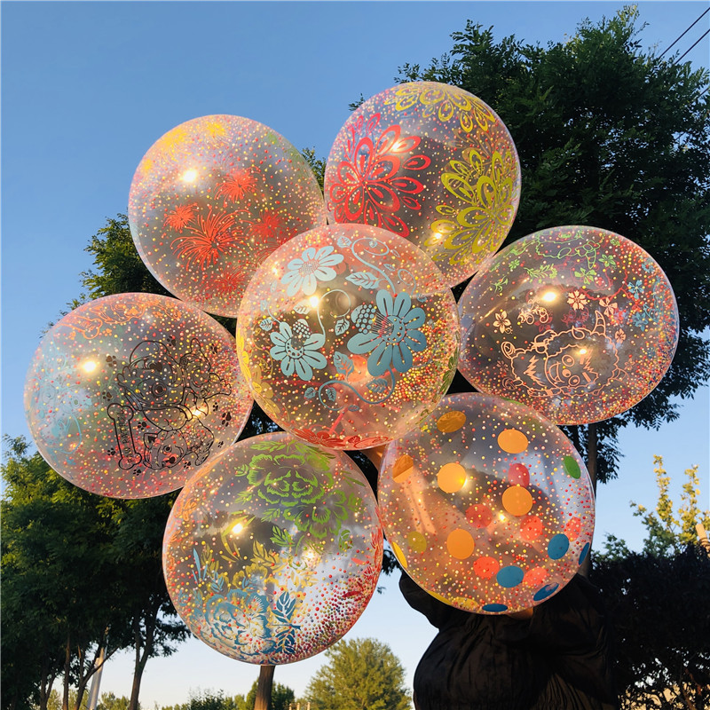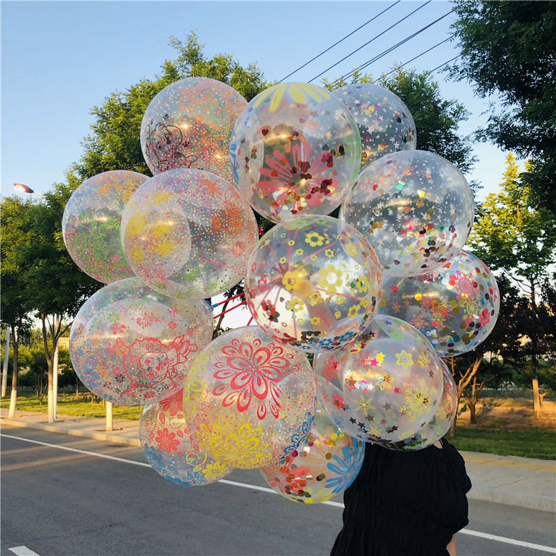 컬러 꽃 풍선 거품 풍선 어린이 장난감 스팽글 풍선 바닥 푸시 스윕 코드 분말 흡입 배수 작은 선물 무료 배송