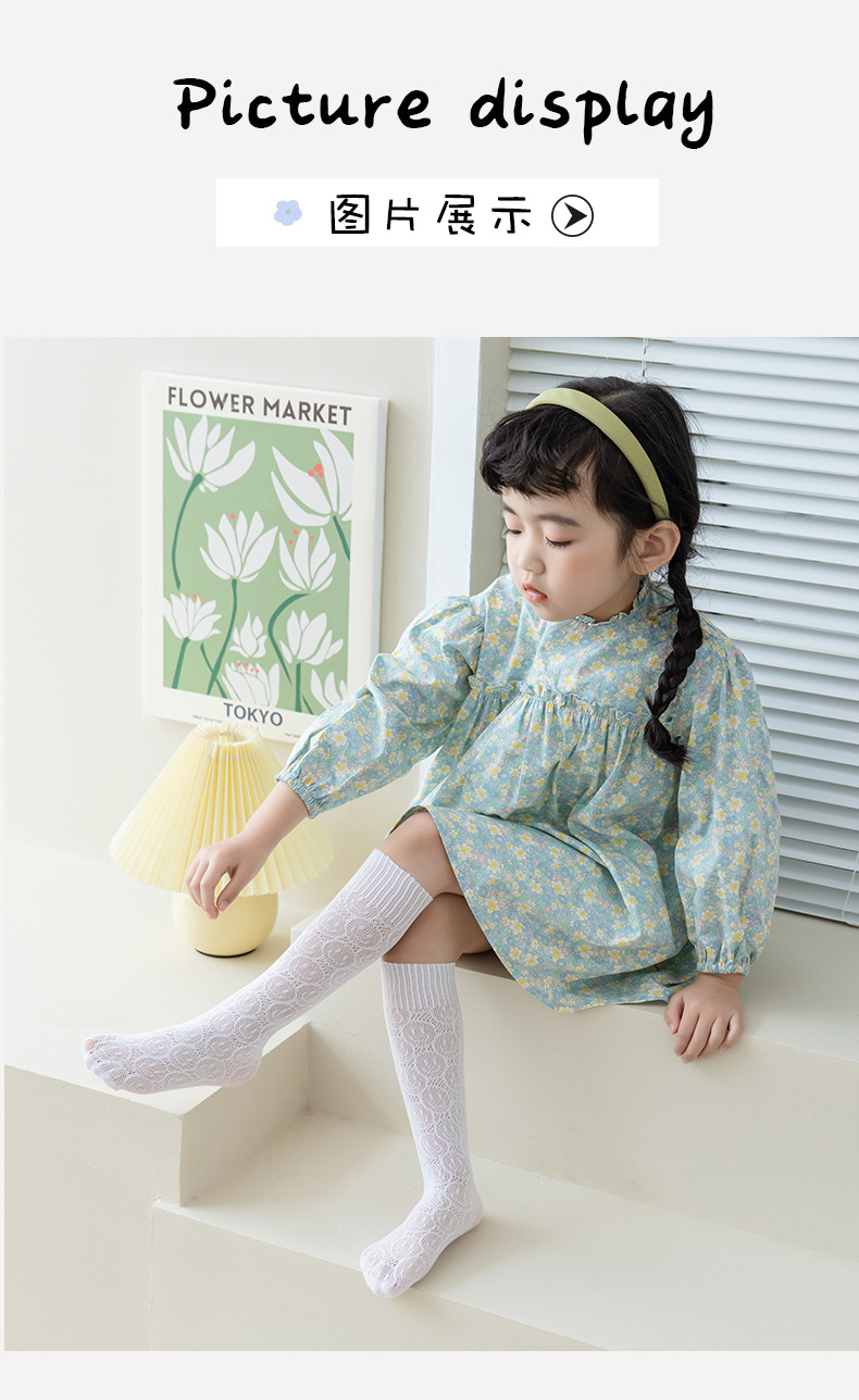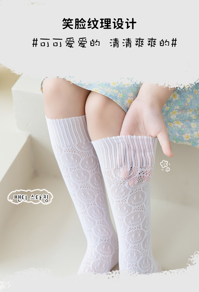 여아 중간 길이 양말 봄과 여름 얇은 메쉬 어린이 레이스 웃는 긴 커프 양말 아기 통기성 모기 방지 양말스토어 가기