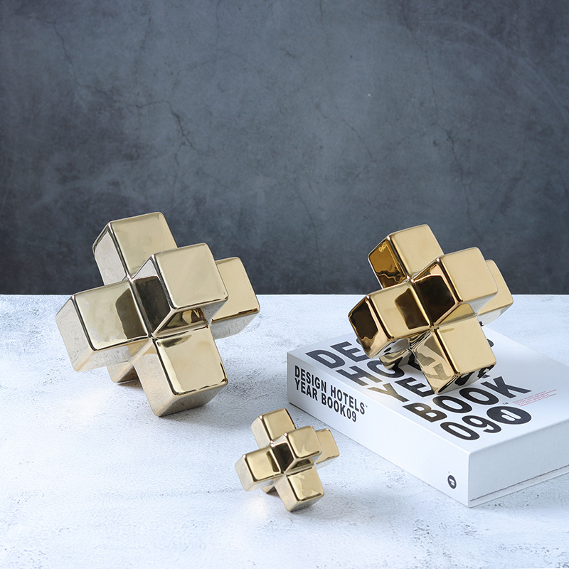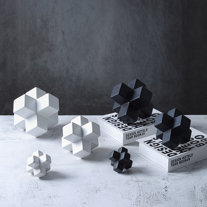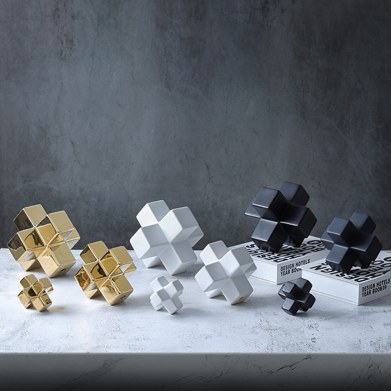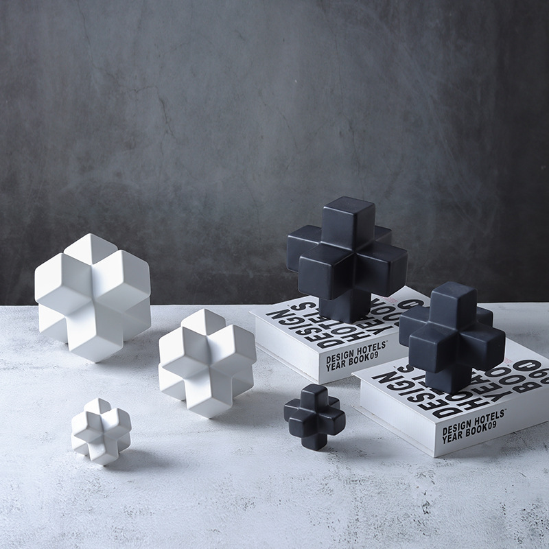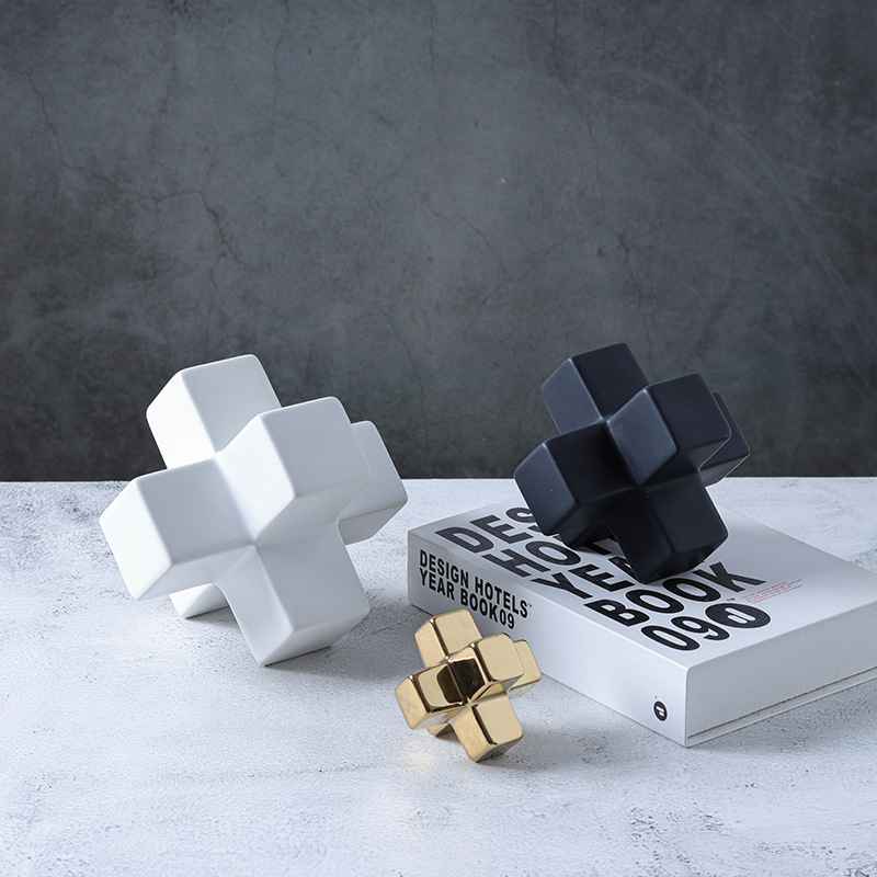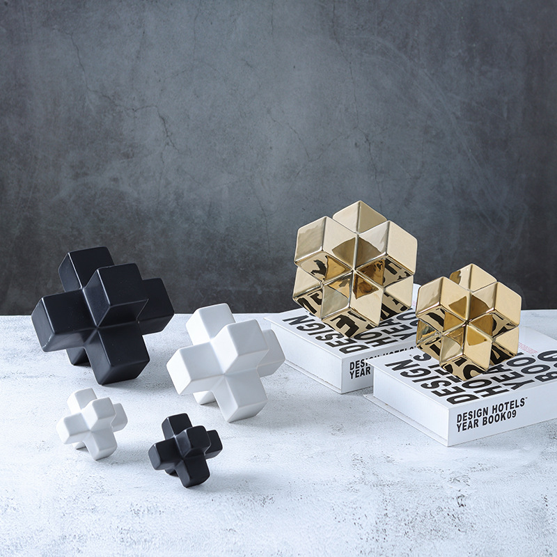 기하학적 크로스 빌딩 블록 사각형 도자기 책 재미 장식품 창조적 인 책장 데스크탑 장식 공예 도매