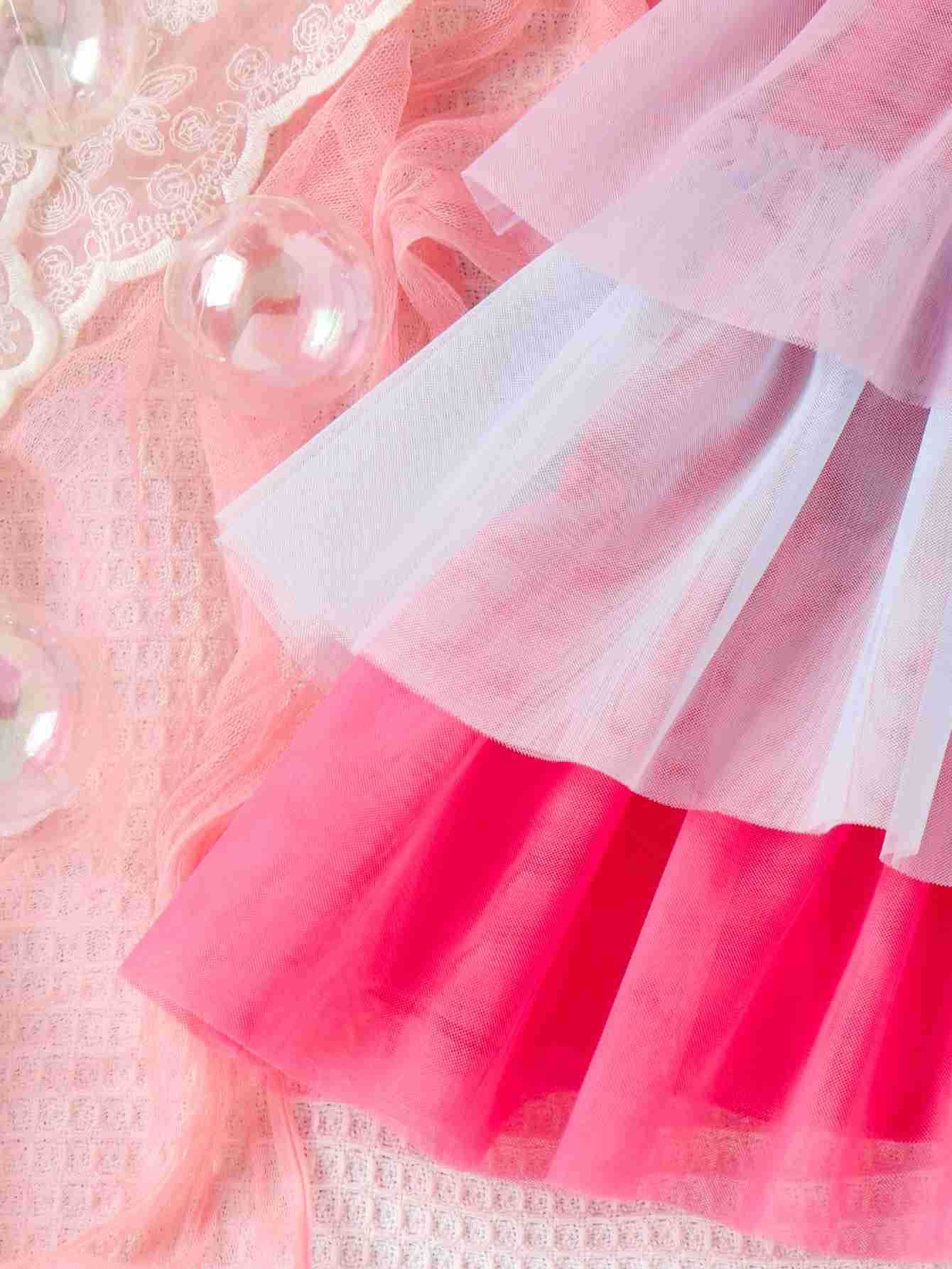 Baopai 아동복 봄과 여름 여아 케이크 스커트 유럽과 미국 어린이 슬링 멀티 컬러 레인보우 메쉬 원피스