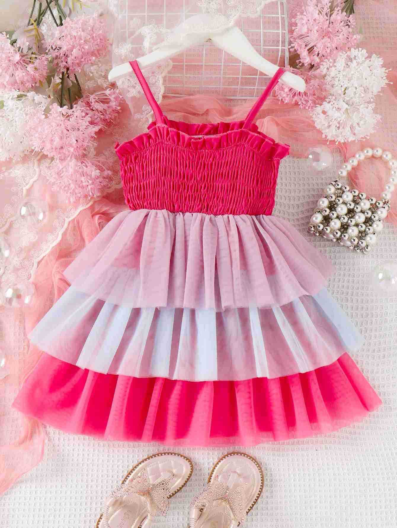 Baopai 아동복 봄과 여름 여아 케이크 스커트 유럽과 미국 어린이 슬링 멀티 컬러 레인보우 메쉬 원피스스토어 가기