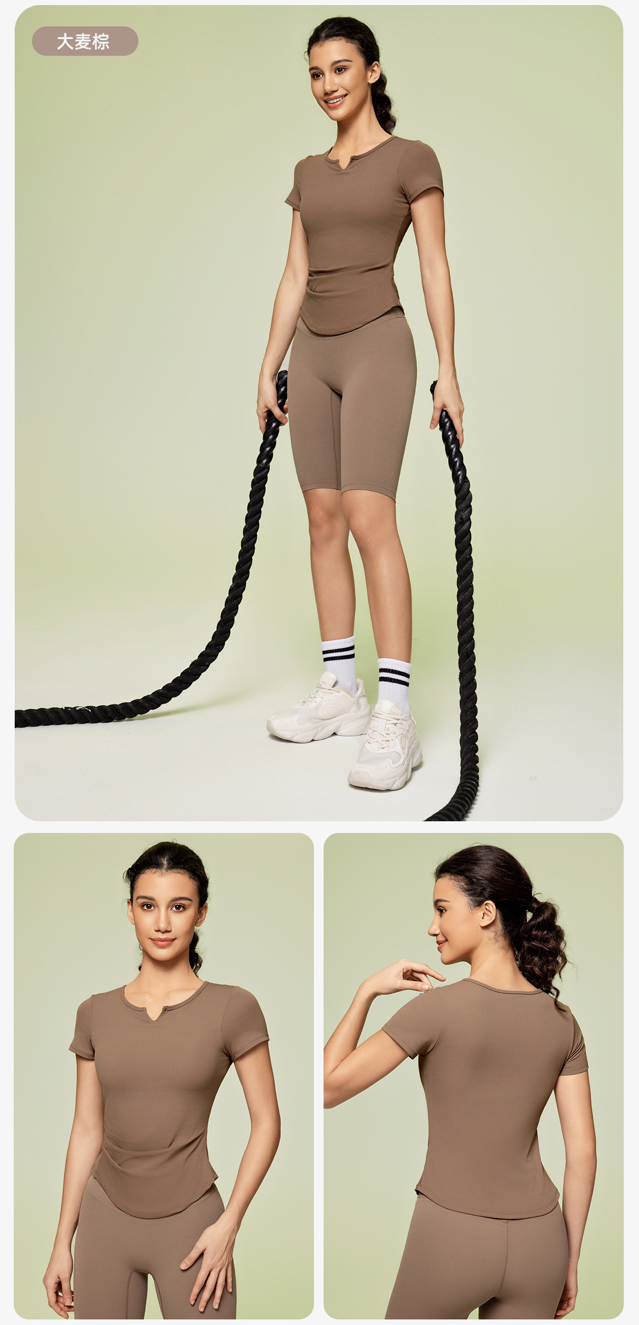 새로운 스레드 허리 슬리밍 스포츠 피트니스 반팔 캐주얼 다목적 겉옷 여성용 요가 탑 DS386