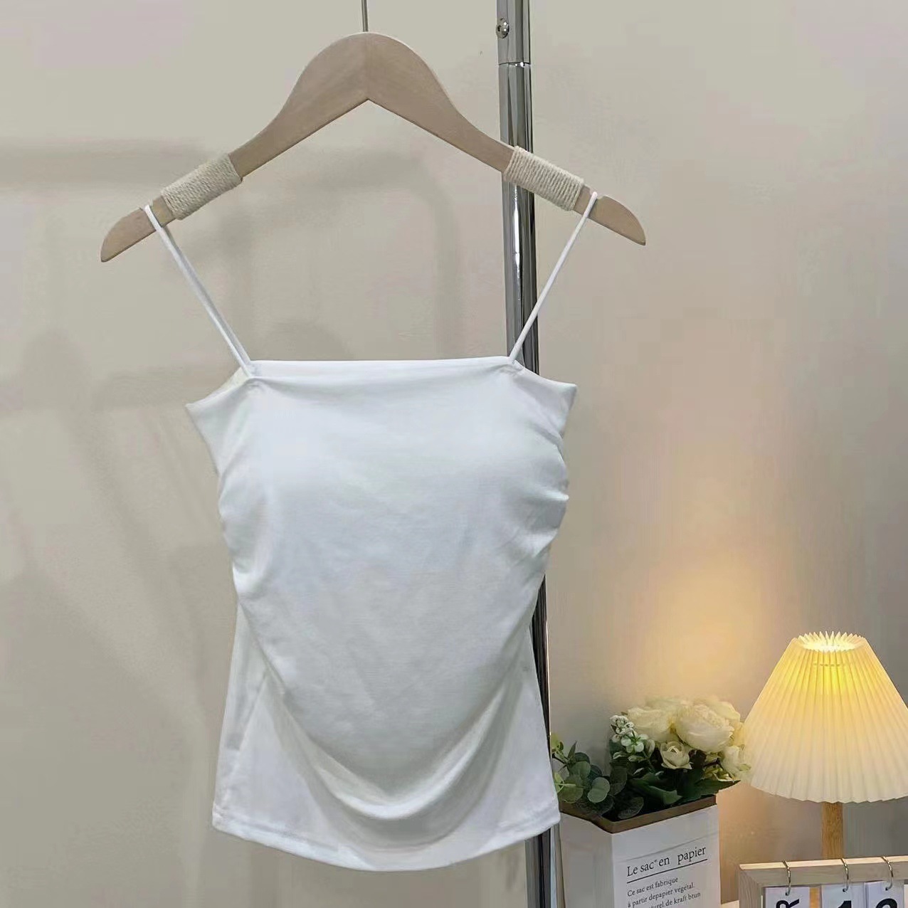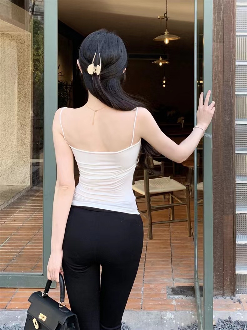 장 베이 베이 모달 코튼 캐미솔 여성용 라텍스 가슴 패드 내외부 스파이스 걸스 올매치 베이스 탑 여성 탑