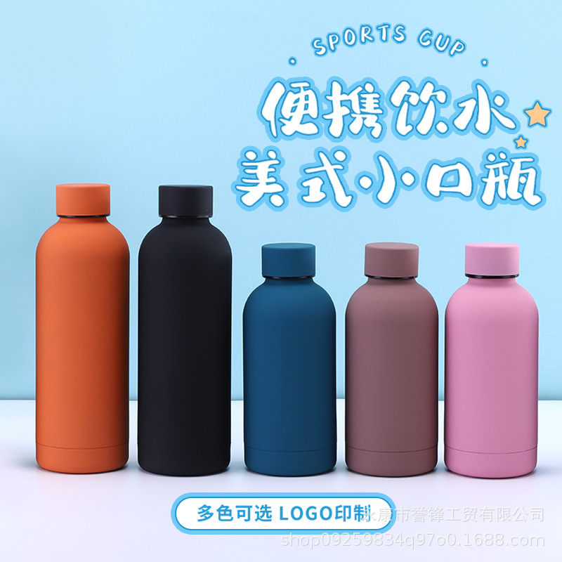 고급스러운 스테인레스 스틸 작은 입 대용량 보온병 컵 휴대용 학생 미니 스포츠 물병 야외 등산 주전자스토어 가기