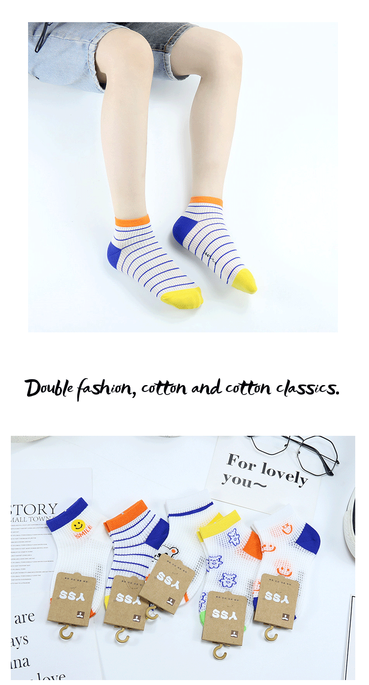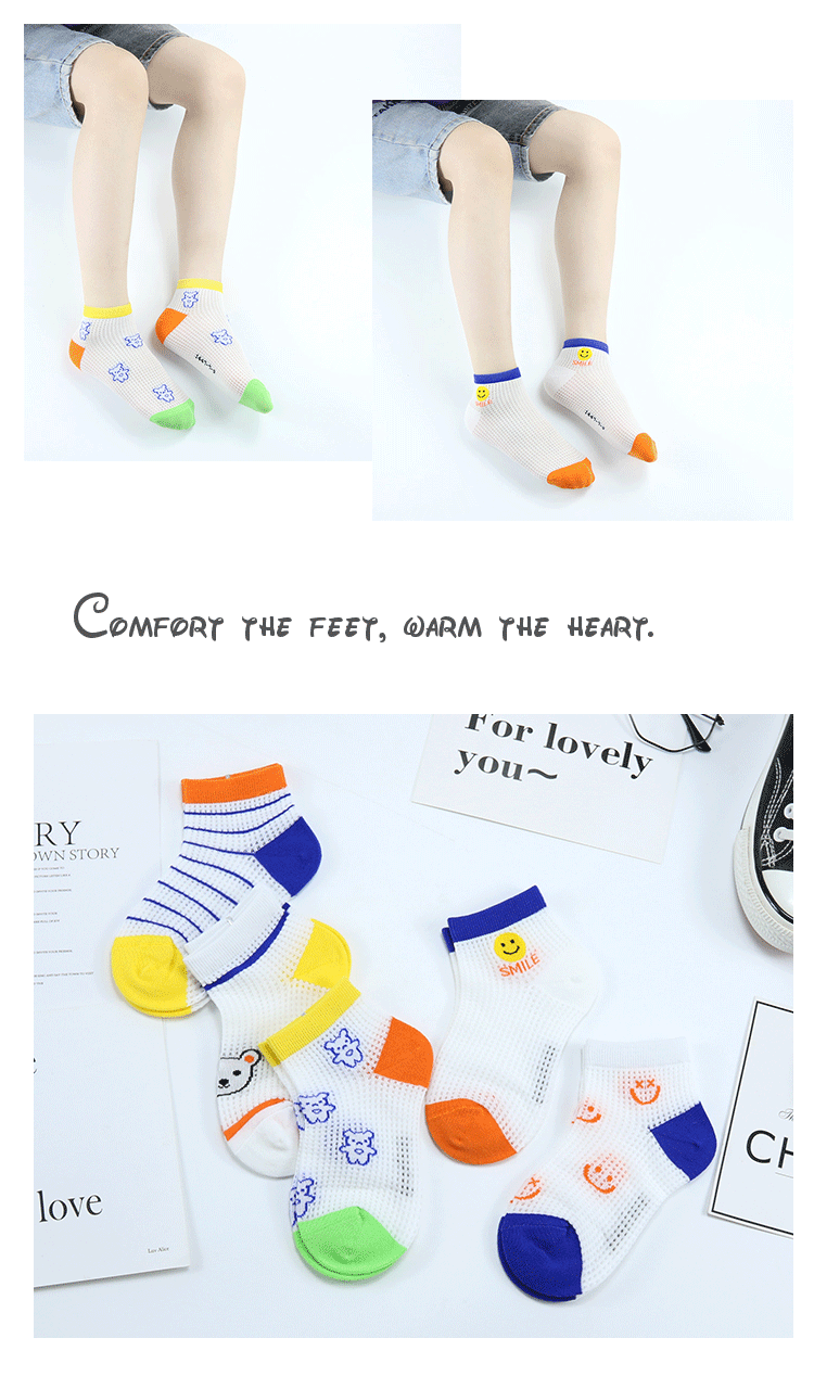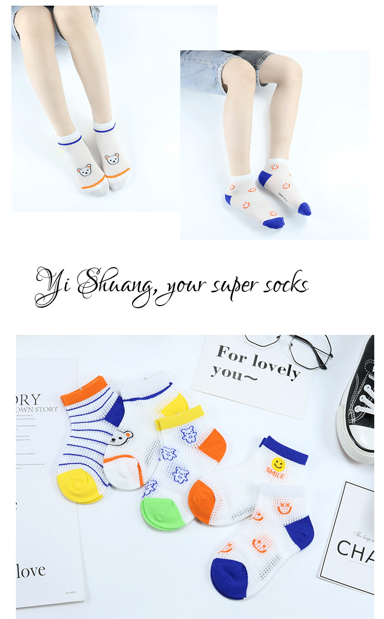 이순신 아동 양말 여름 뉴 대형 그물 초박형 한국판 곰 짧은 양말 빗질 면 스마일 얼굴 스포츠 양말 조수