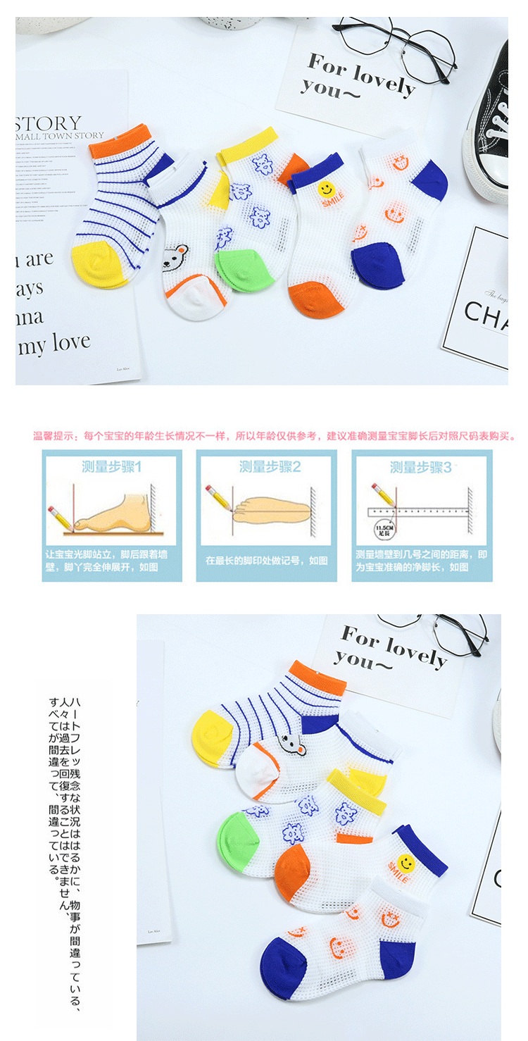 이순신 아동 양말 여름 뉴 대형 그물 초박형 한국판 곰 짧은 양말 빗질 면 스마일 얼굴 스포츠 양말 조수스토어 가기
